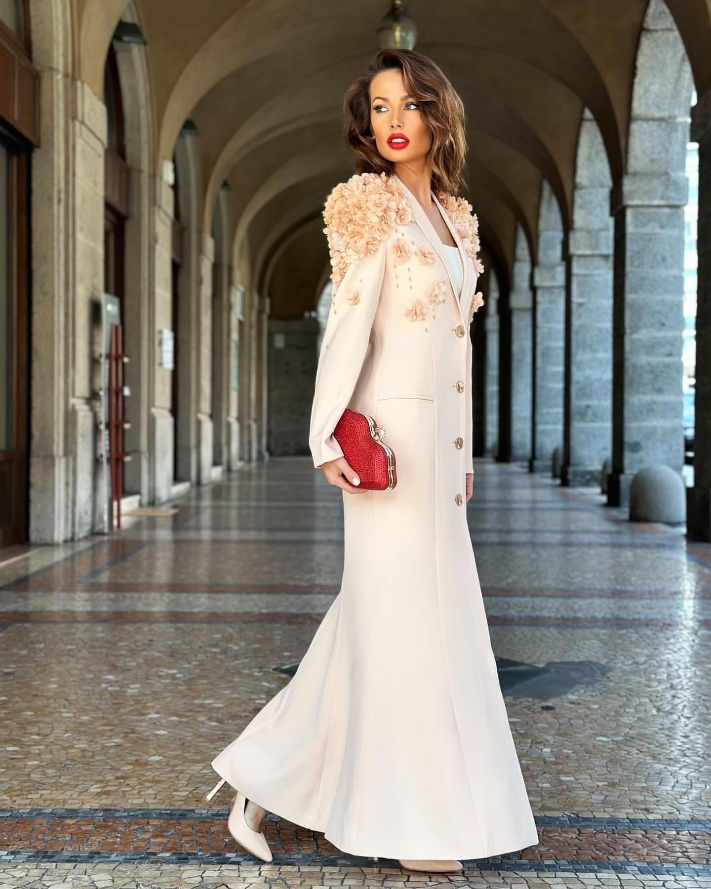 Long Sleeve Floral Crystal Maxi Coat Dress Ivory HV1717