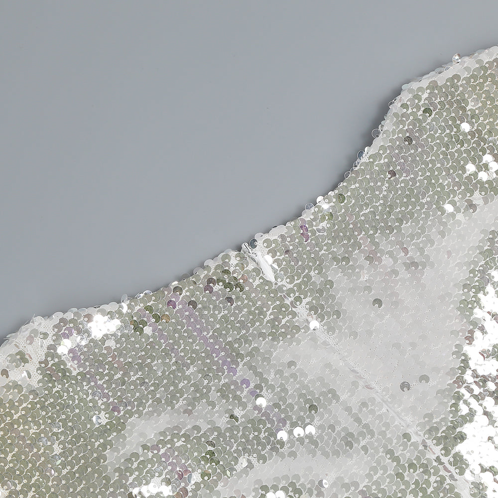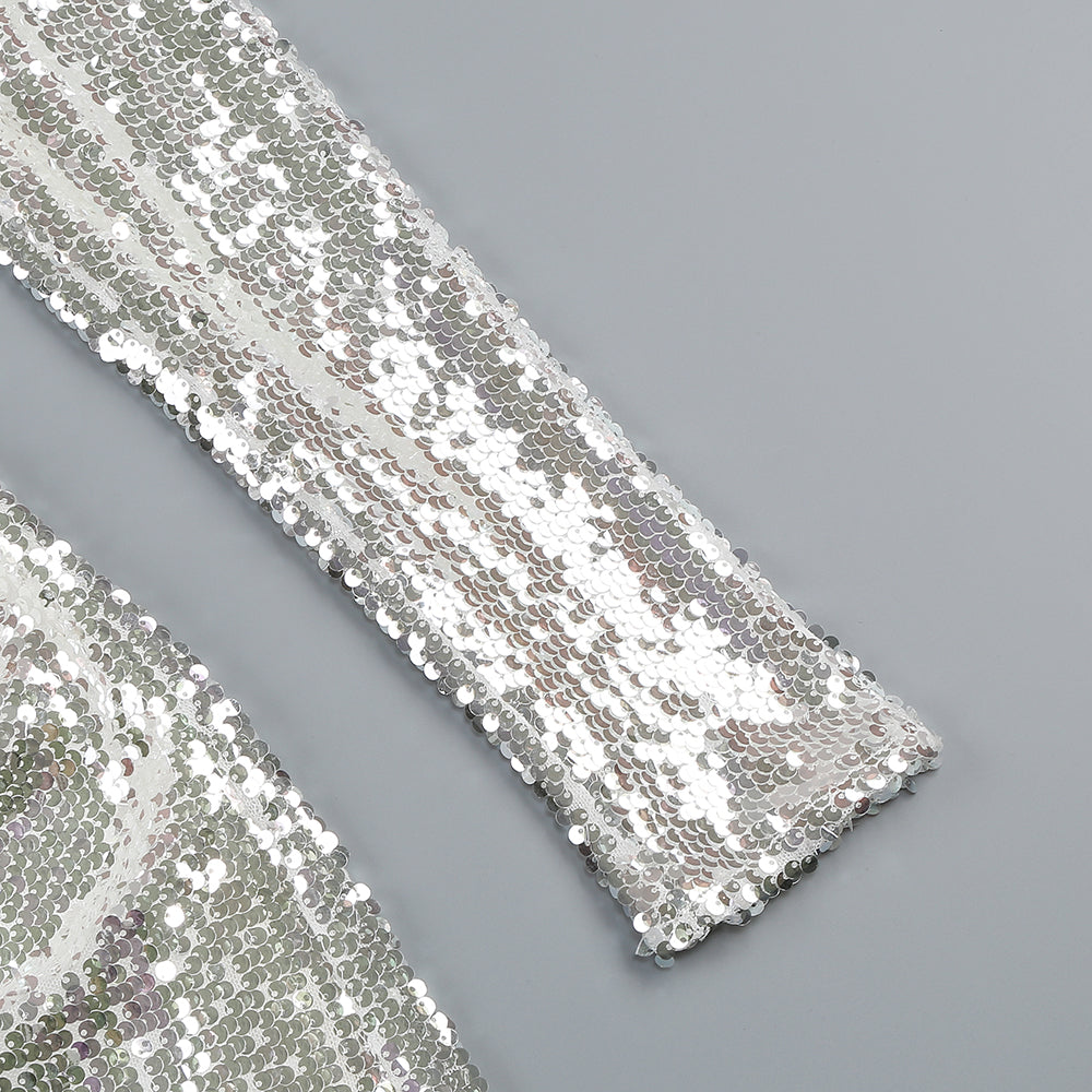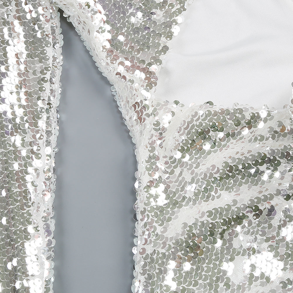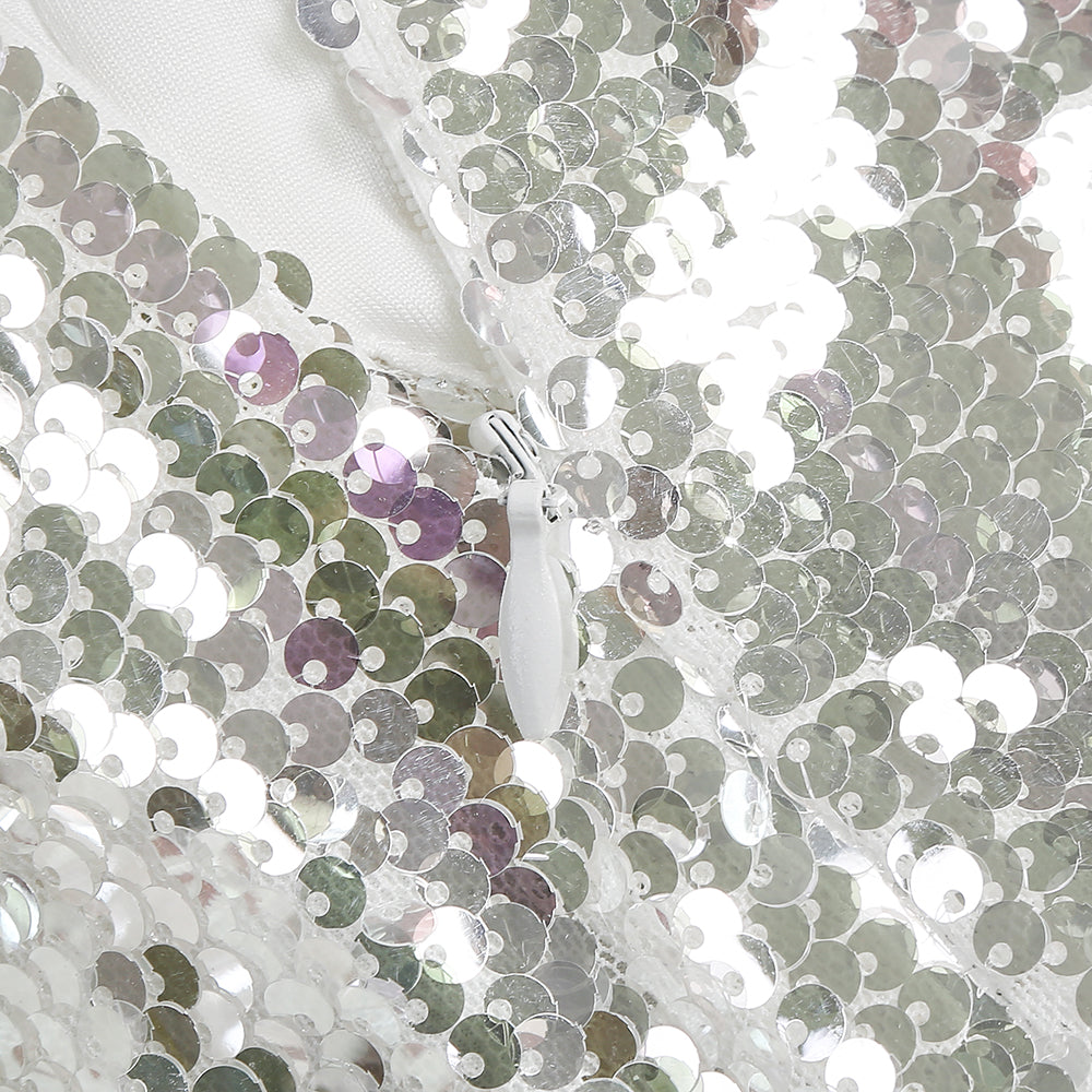 ong Sleeve Flower Detail Sequin Midi Dress White