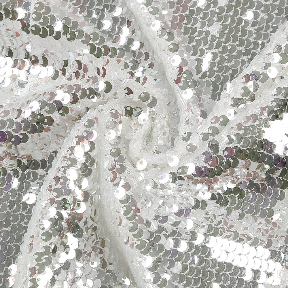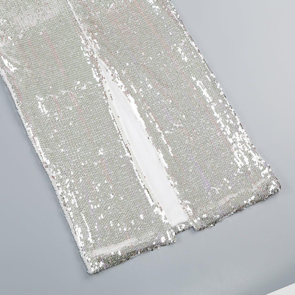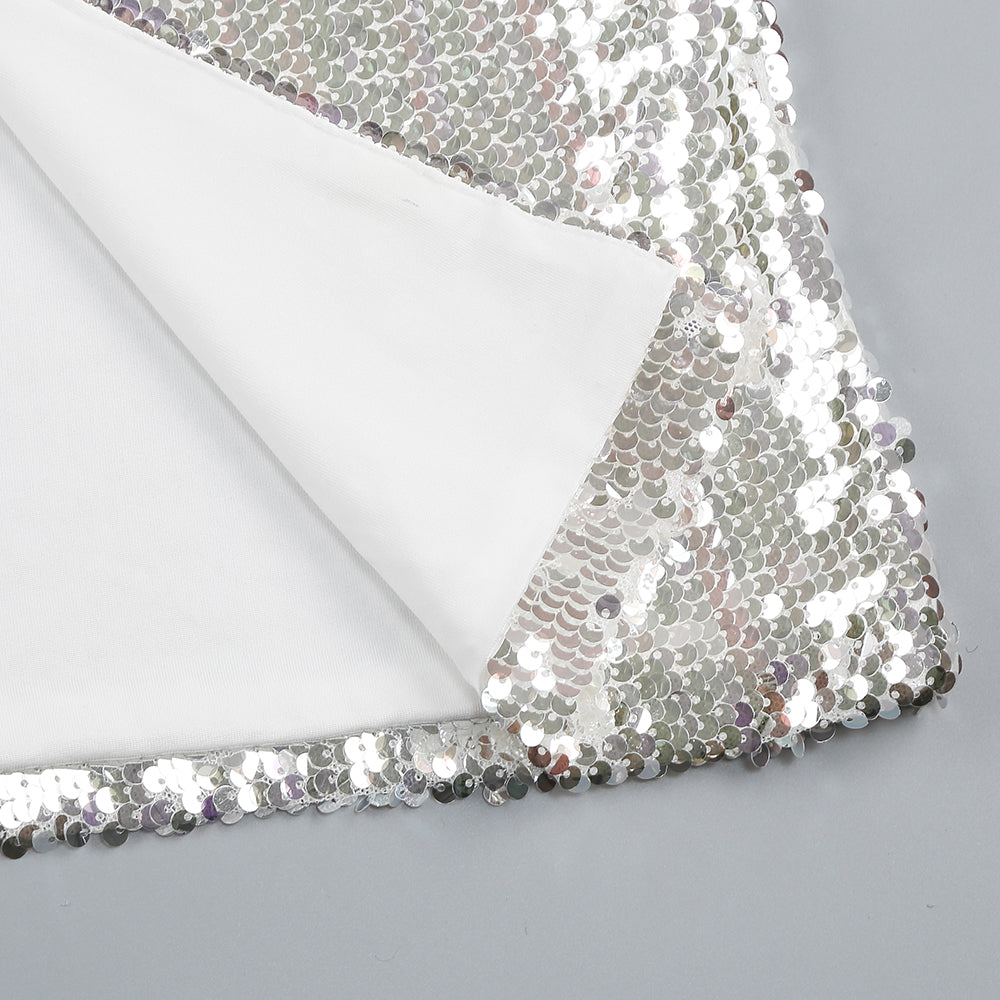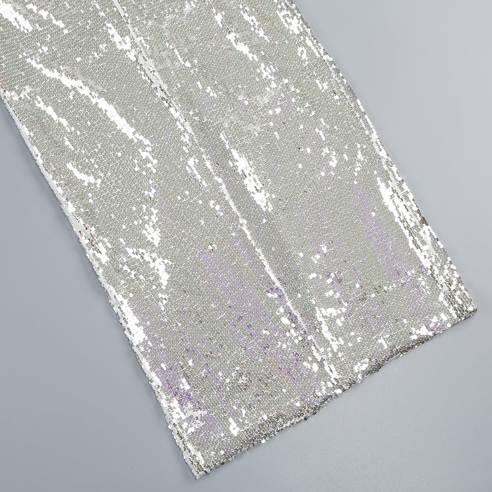 ong Sleeve Flower Detail Sequin Midi Dress White