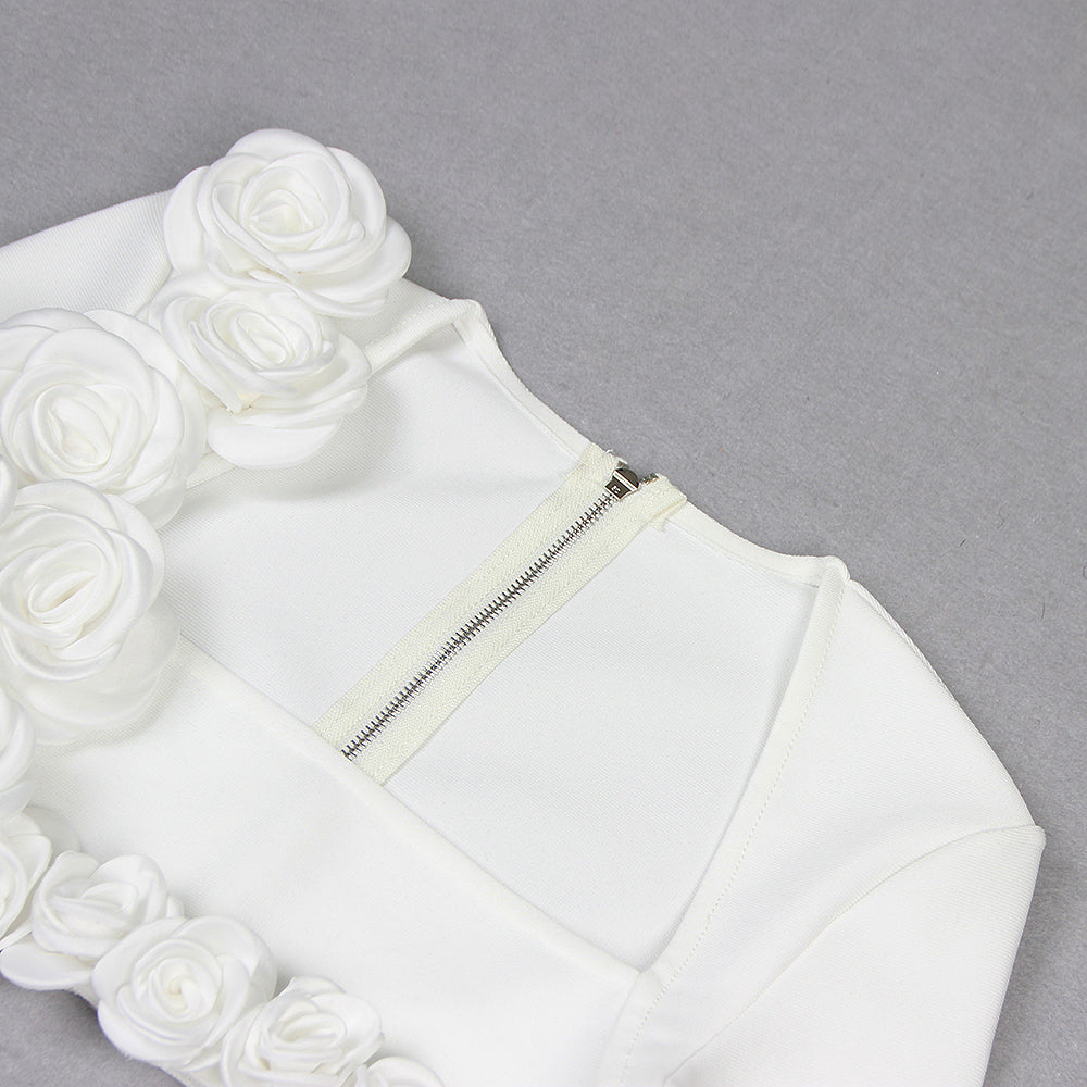 Long Sleeve Flower Detail Two Piece Maxi Dress White HV1155