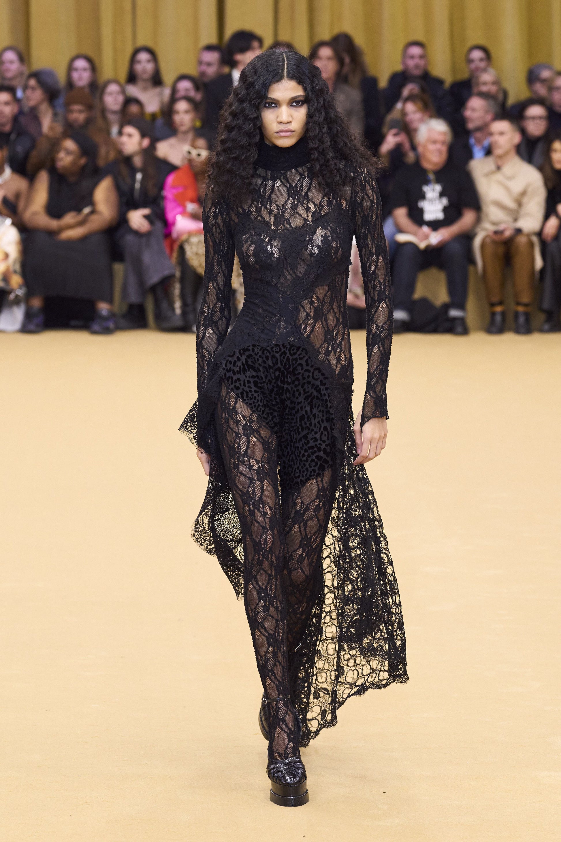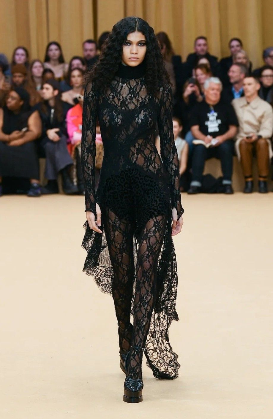 Long Sleeve Maxi Lace Velvet Dress Black