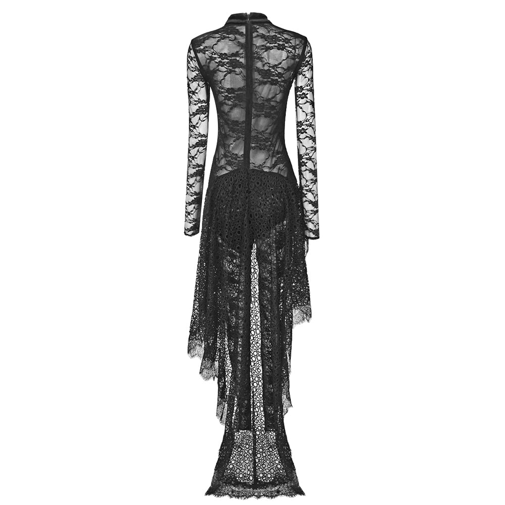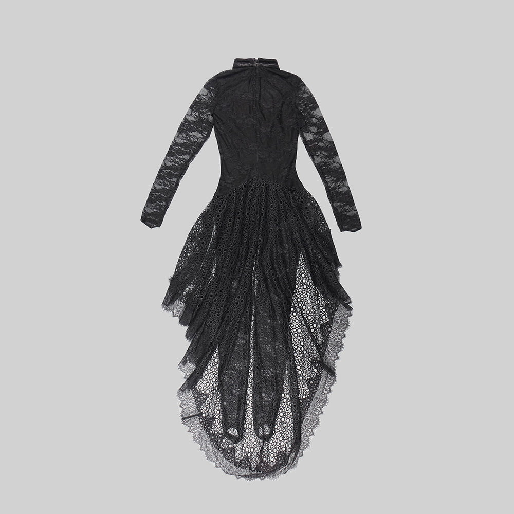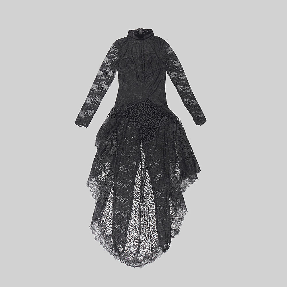 Long Sleeve Maxi Lace Velvet Dress Black HV