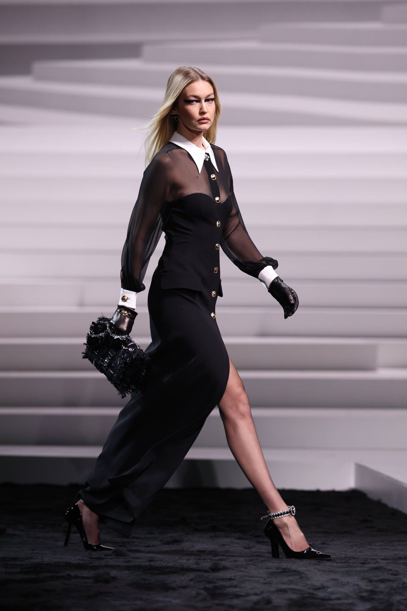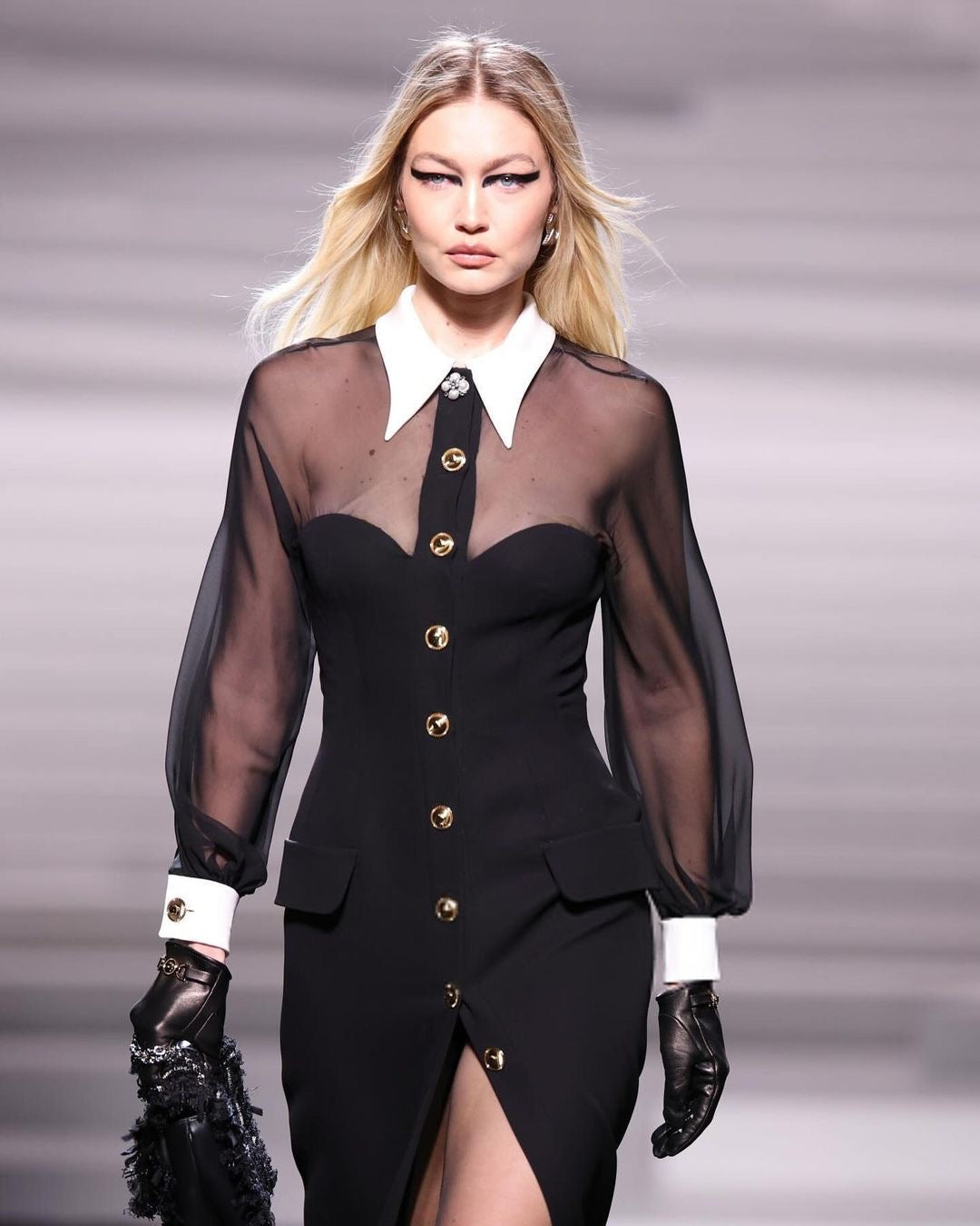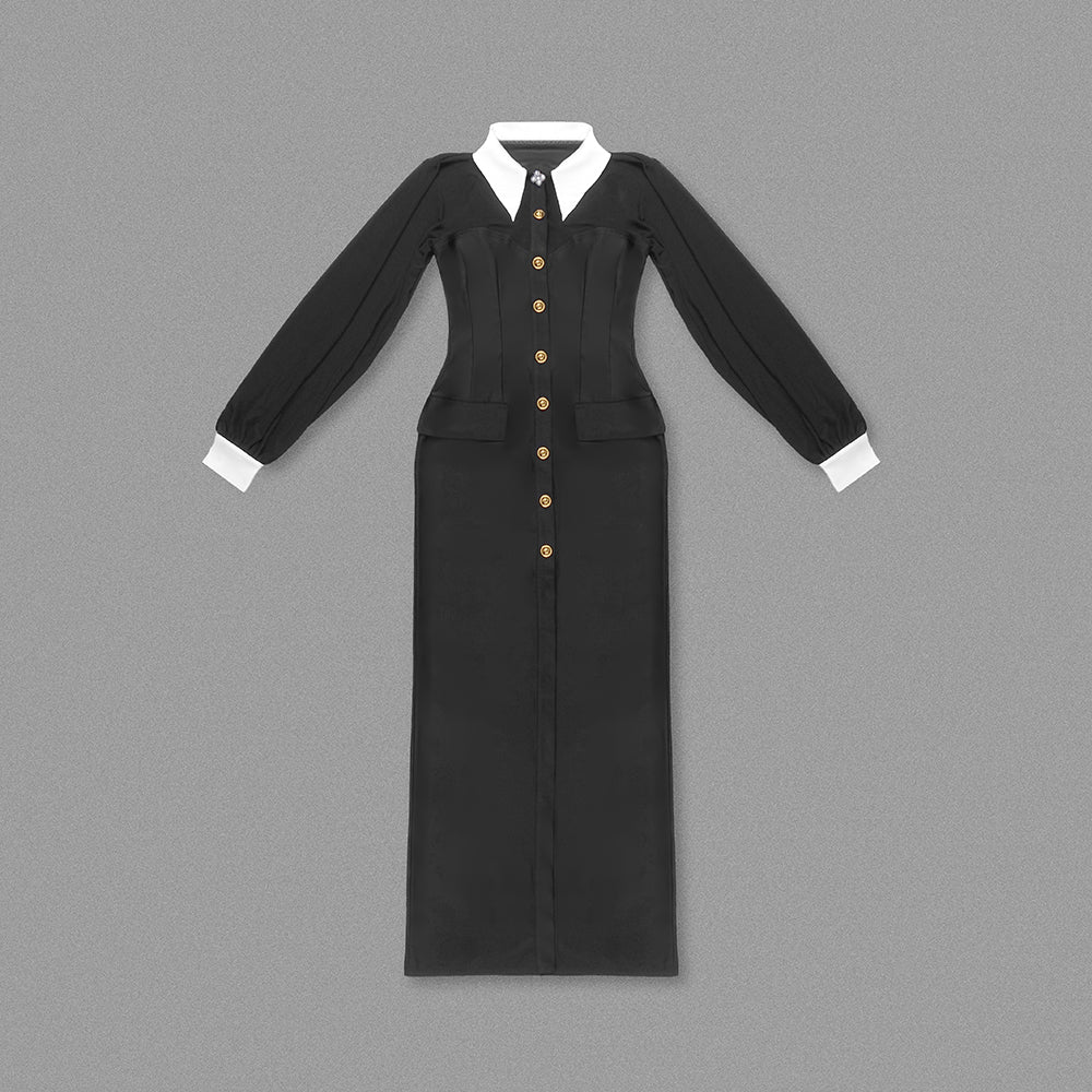 Long Sleeve Mesh Button Maxi Dress Black HV1263