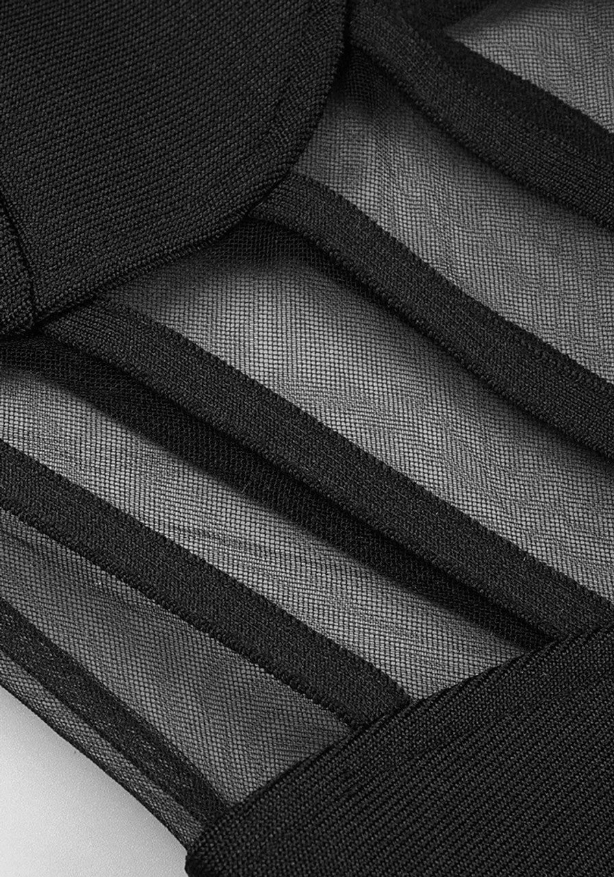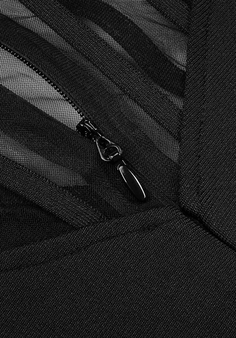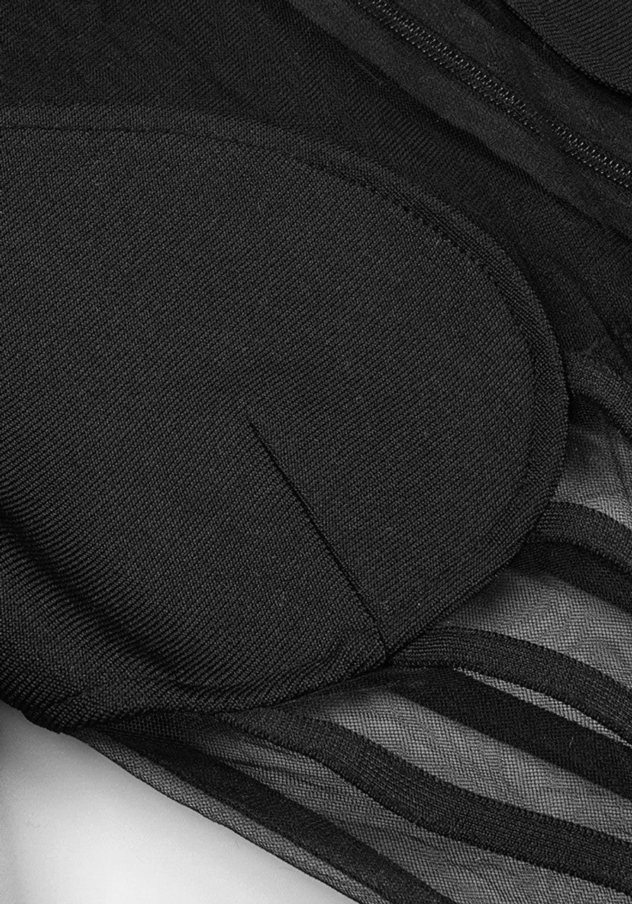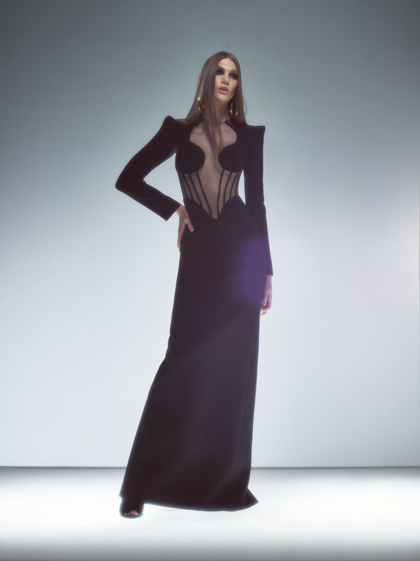 Long Sleeve Mesh Insert Maxi Dress Black