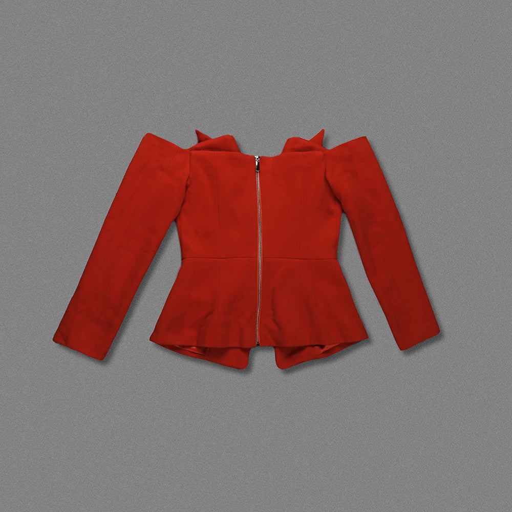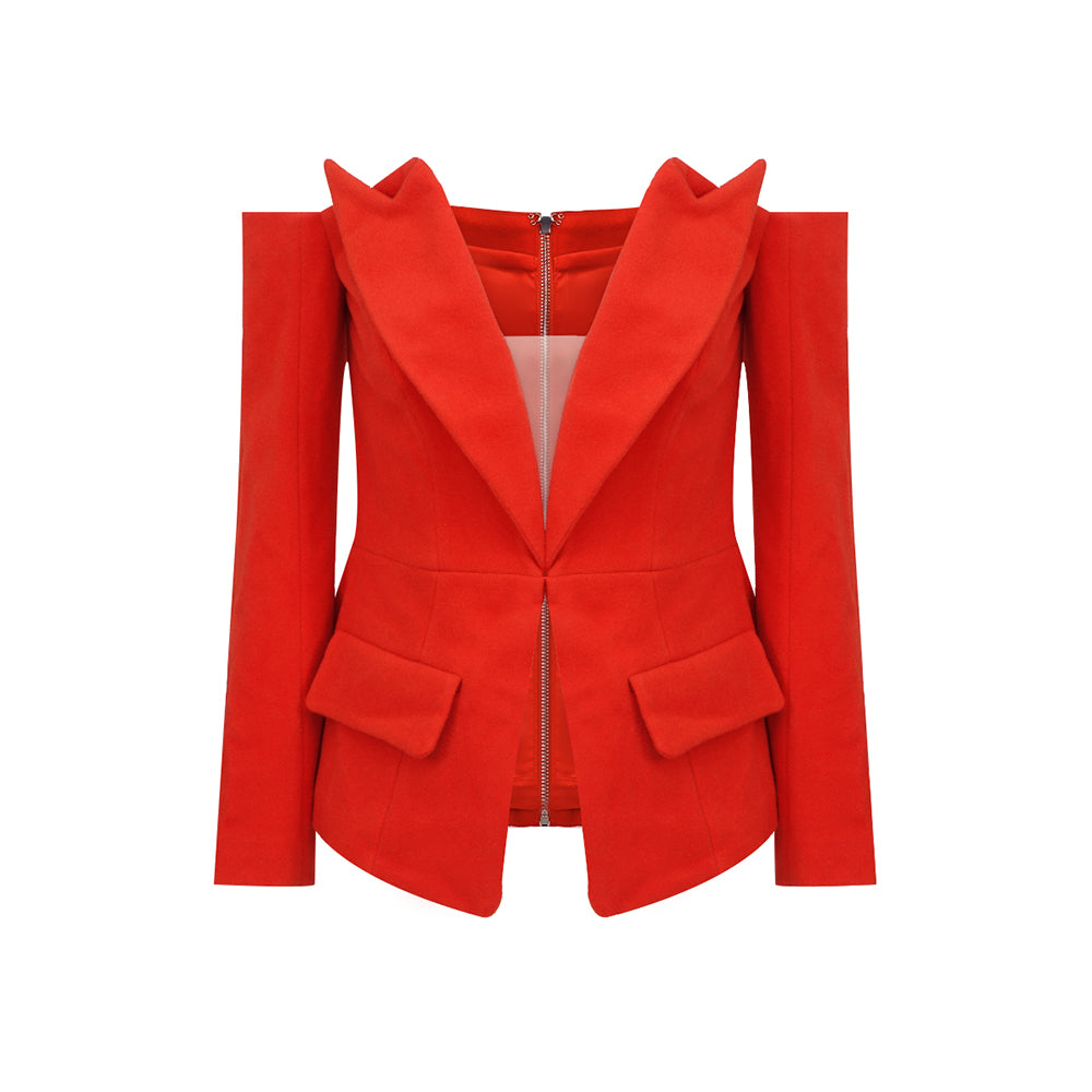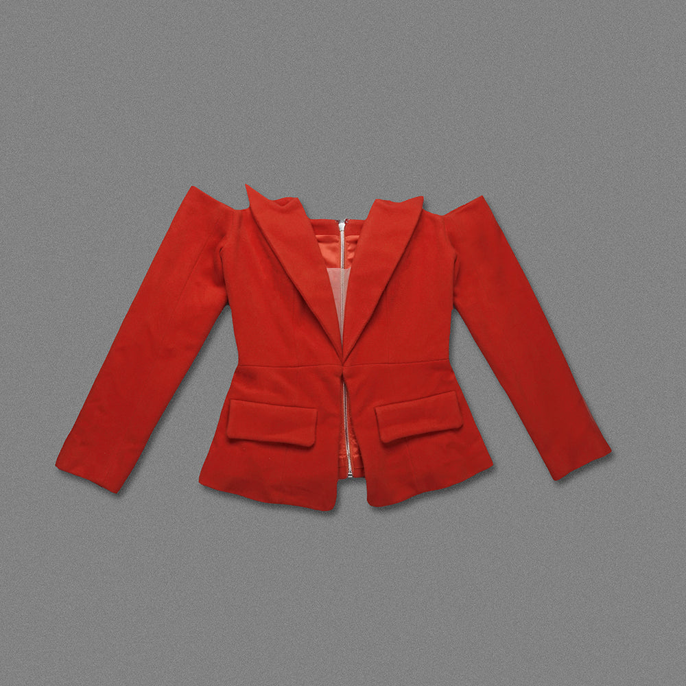 Long Sleeve Off Shoulder Blazer Red