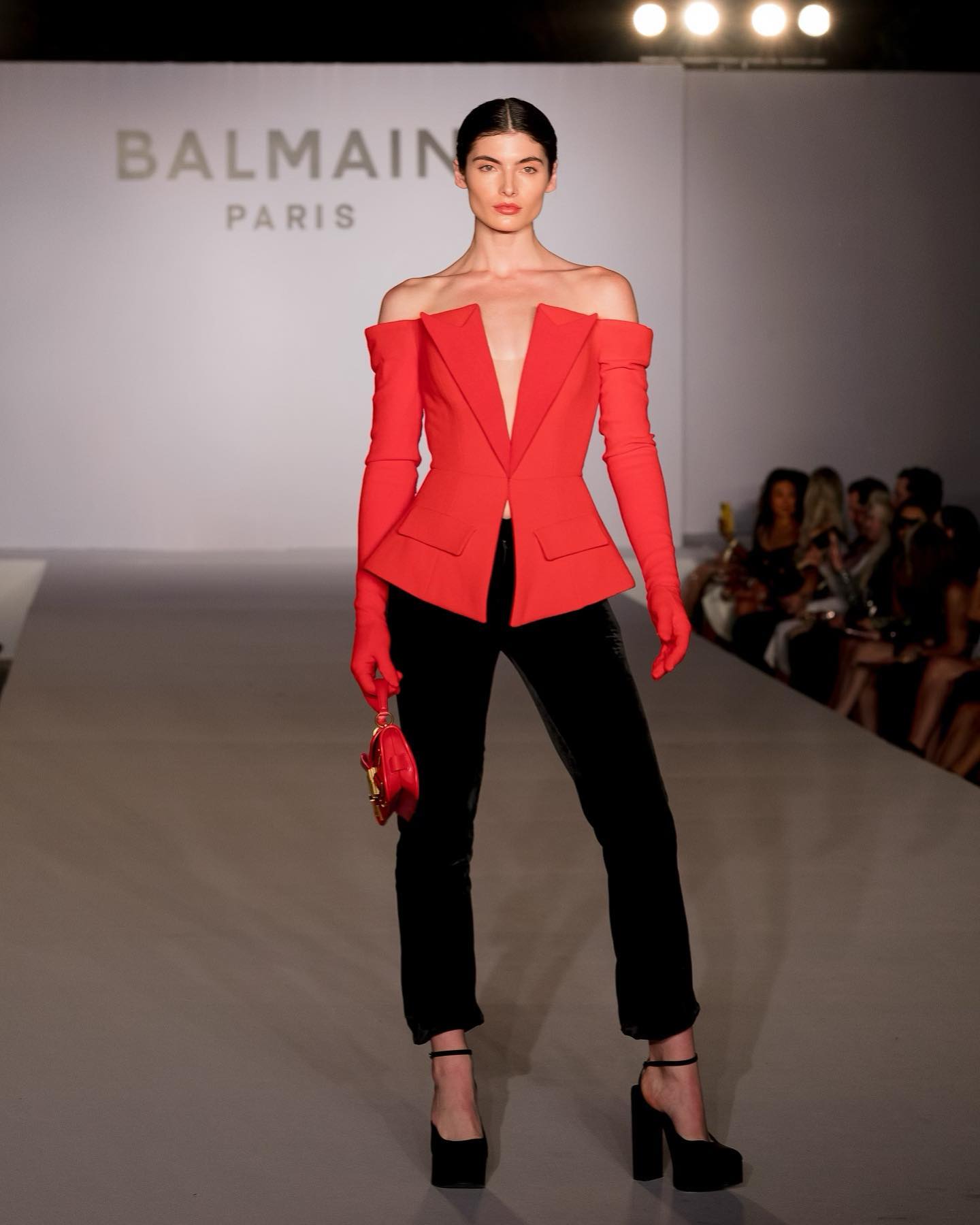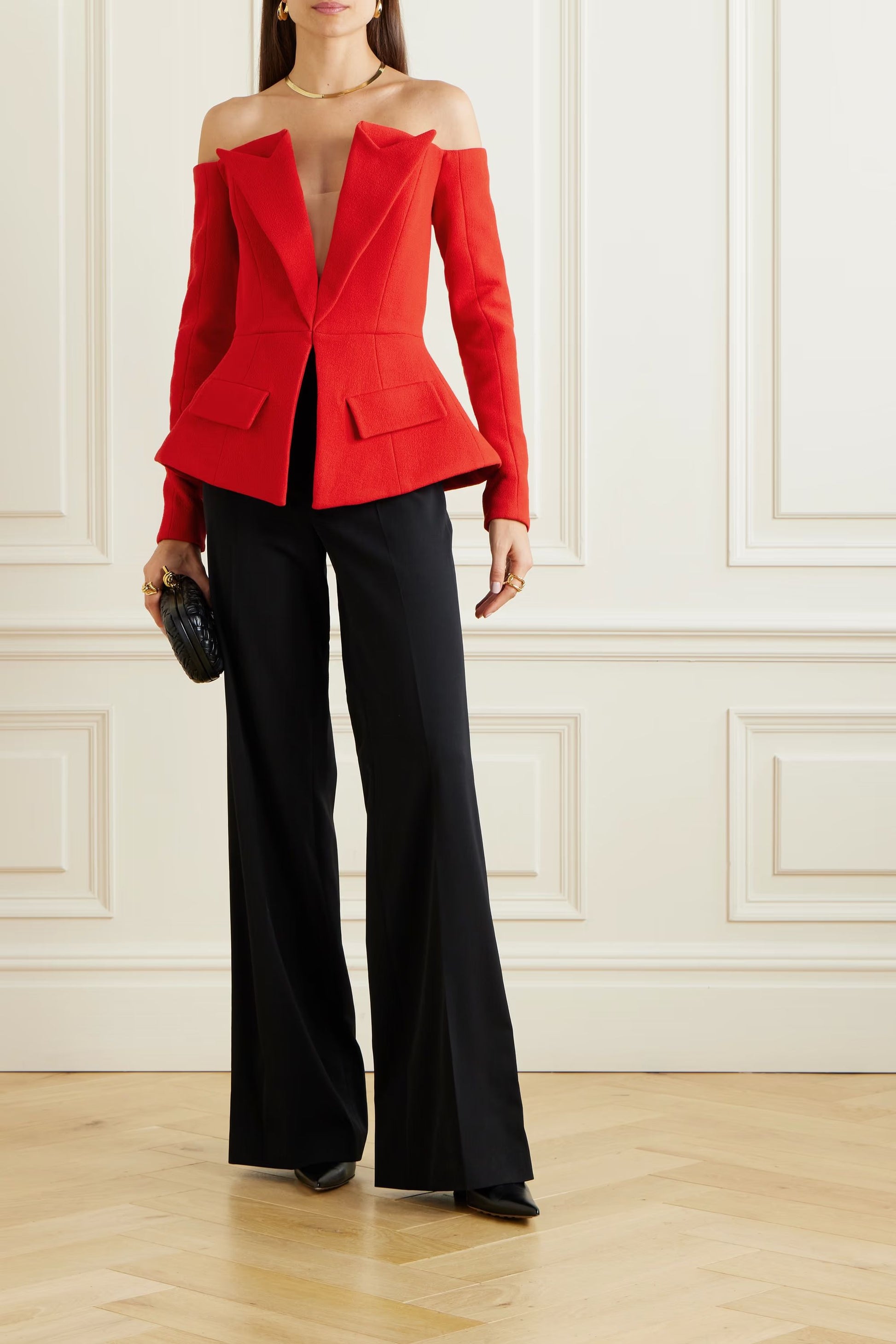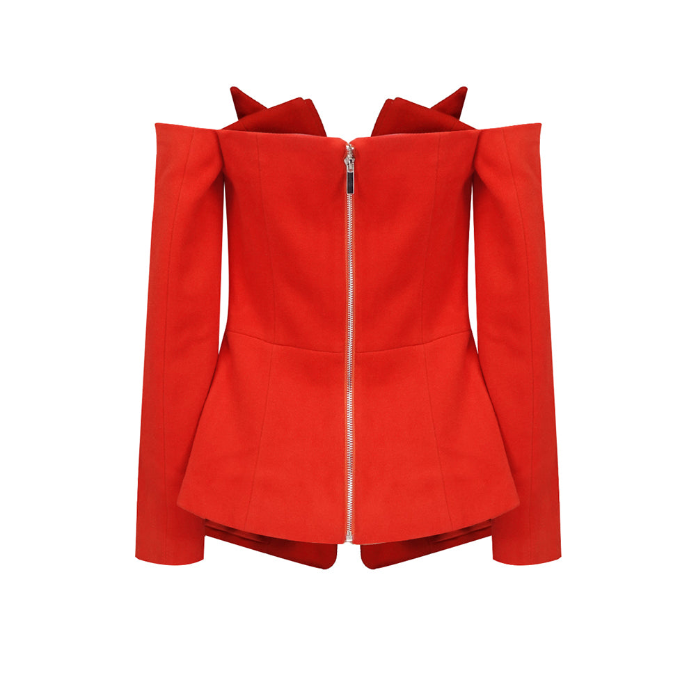 Long Sleeve Off Shoulder Blazer Red