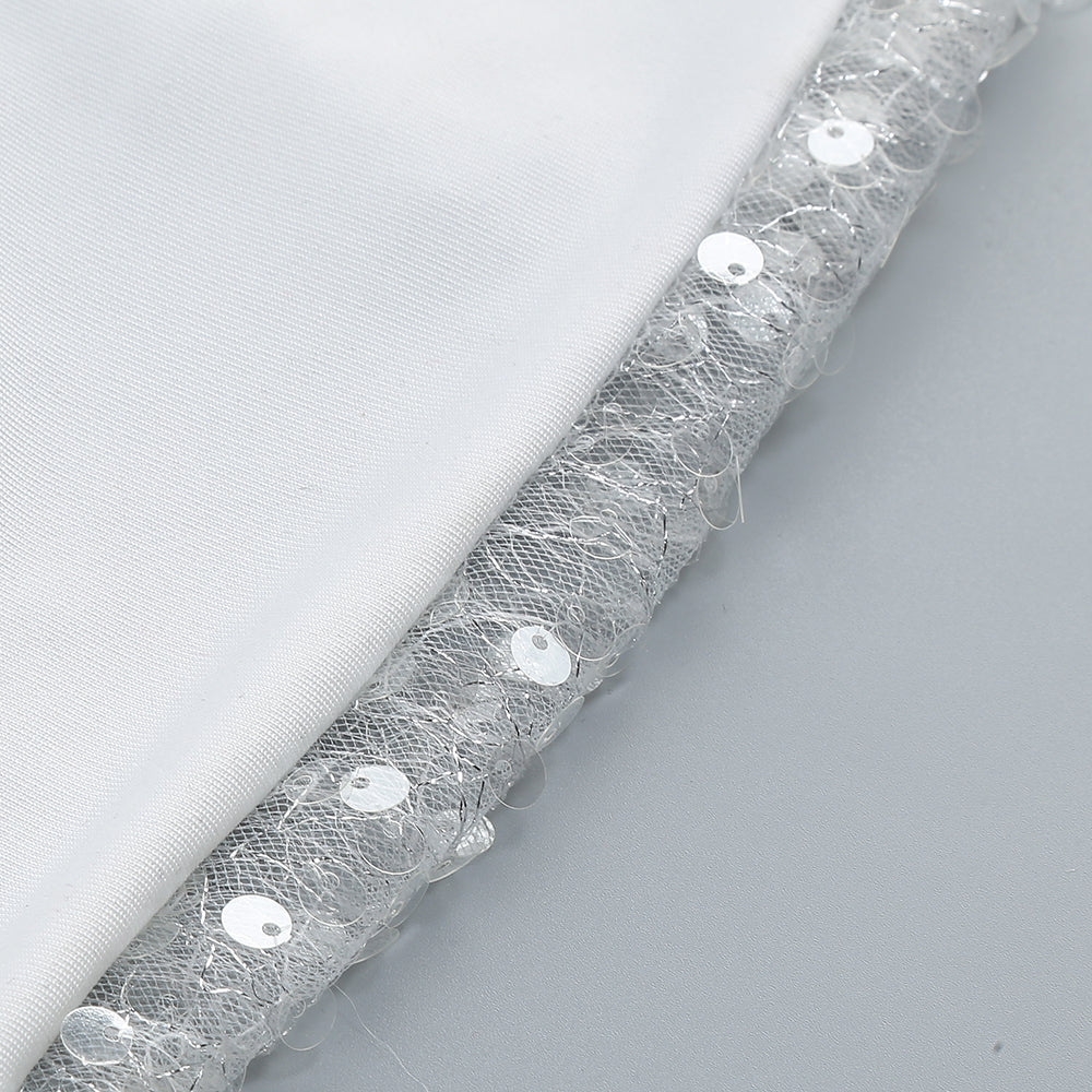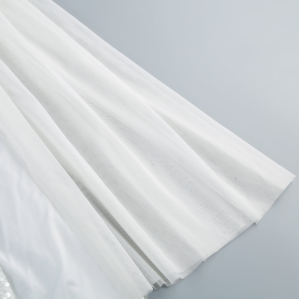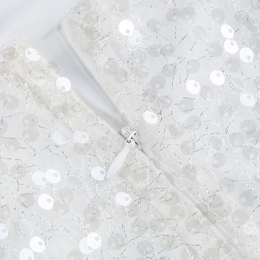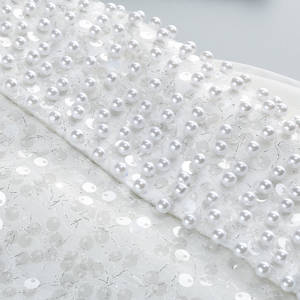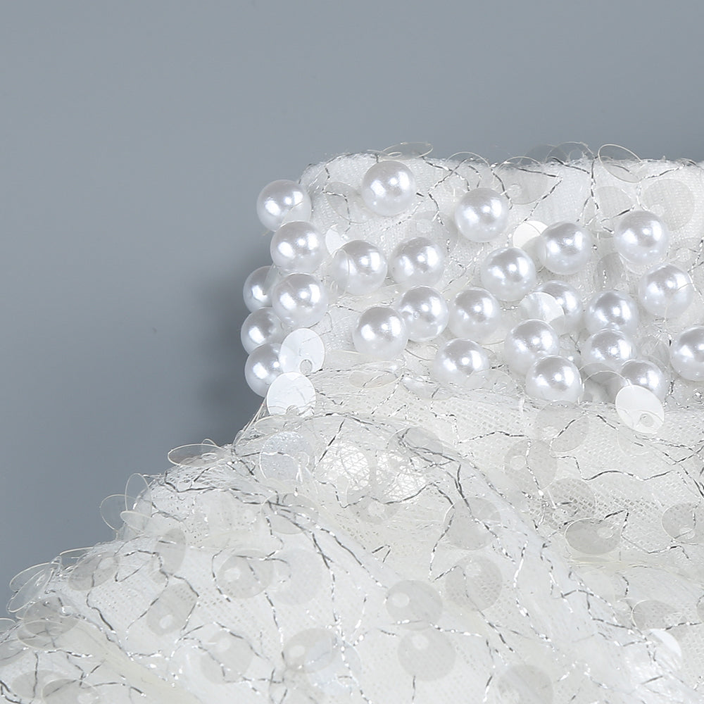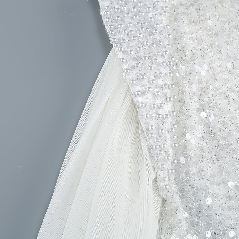Long Sleeve Sequin Pearl Backless Maxi Dress White