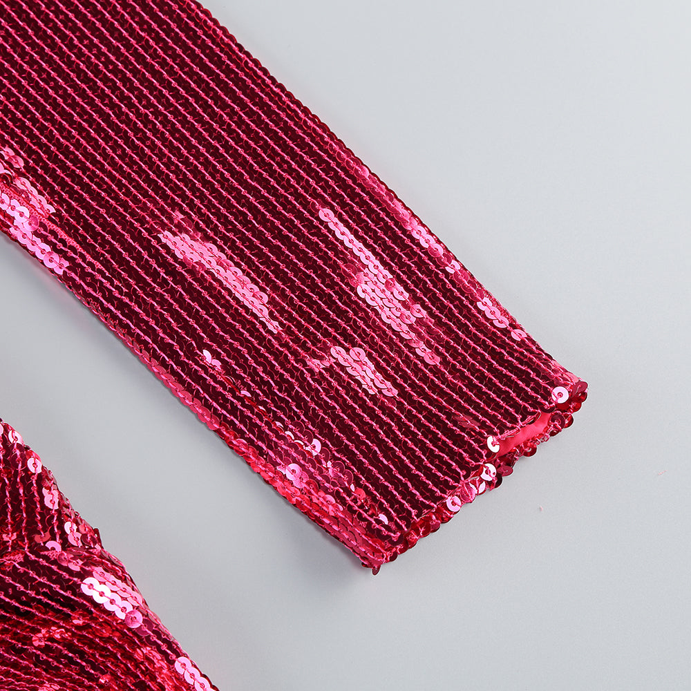 Long Sleeve Sequin Ruched Maxi Dress Watermelon