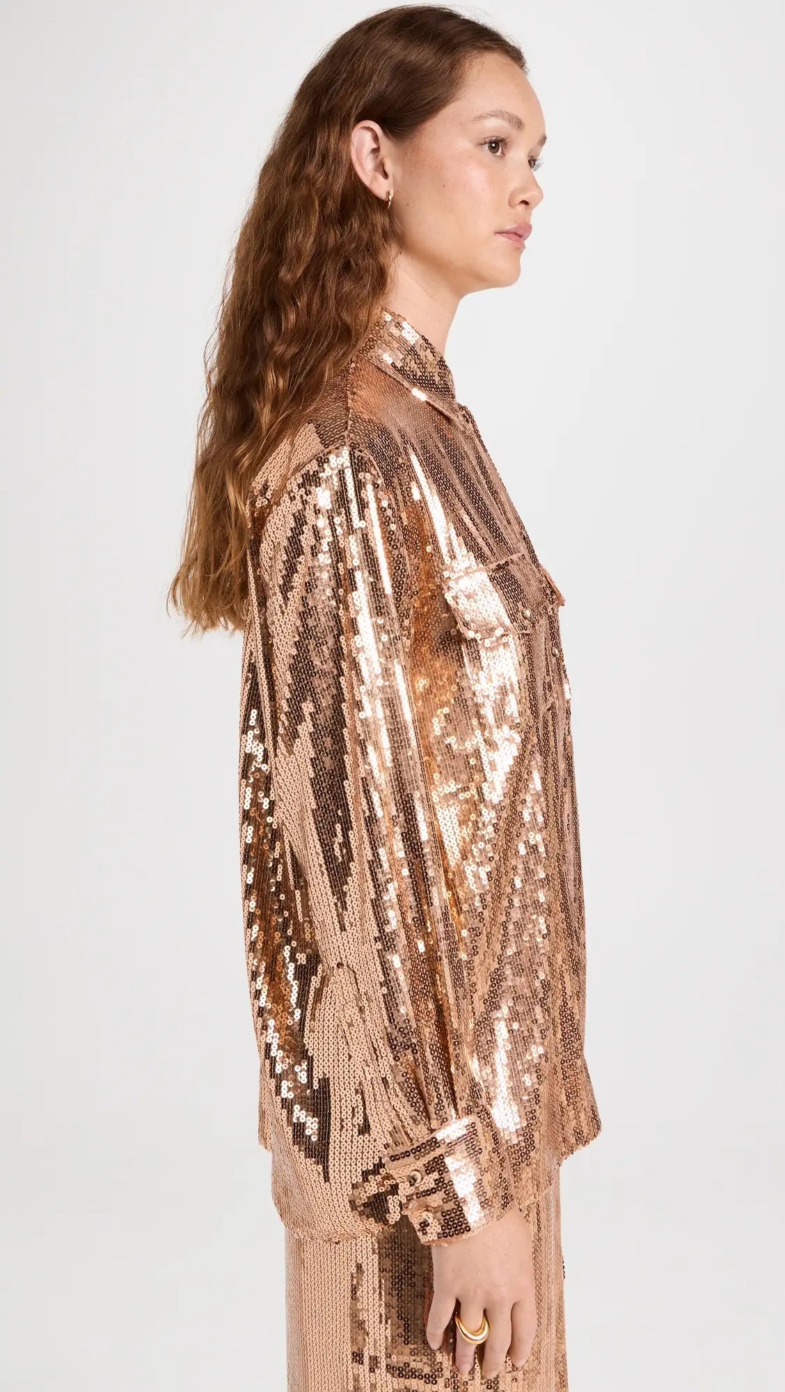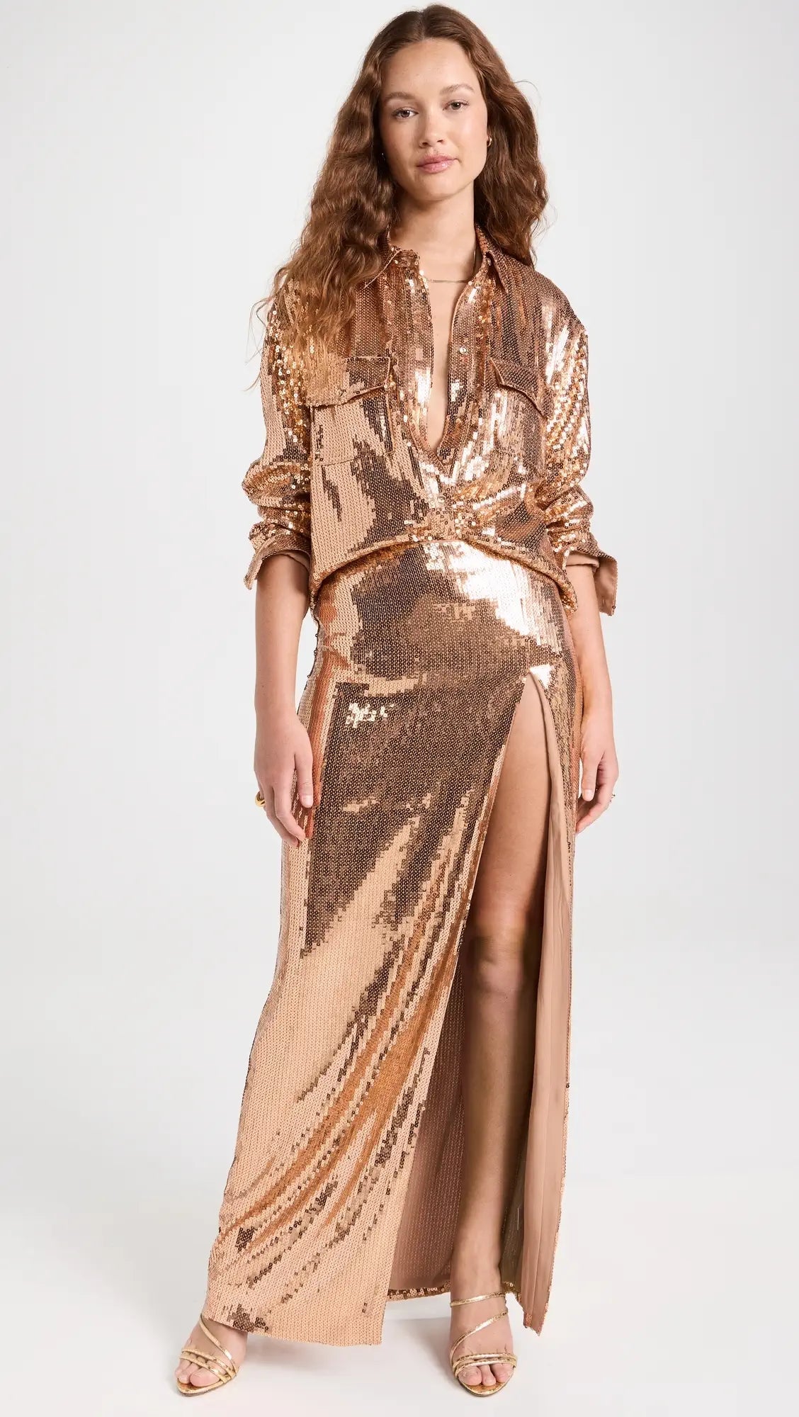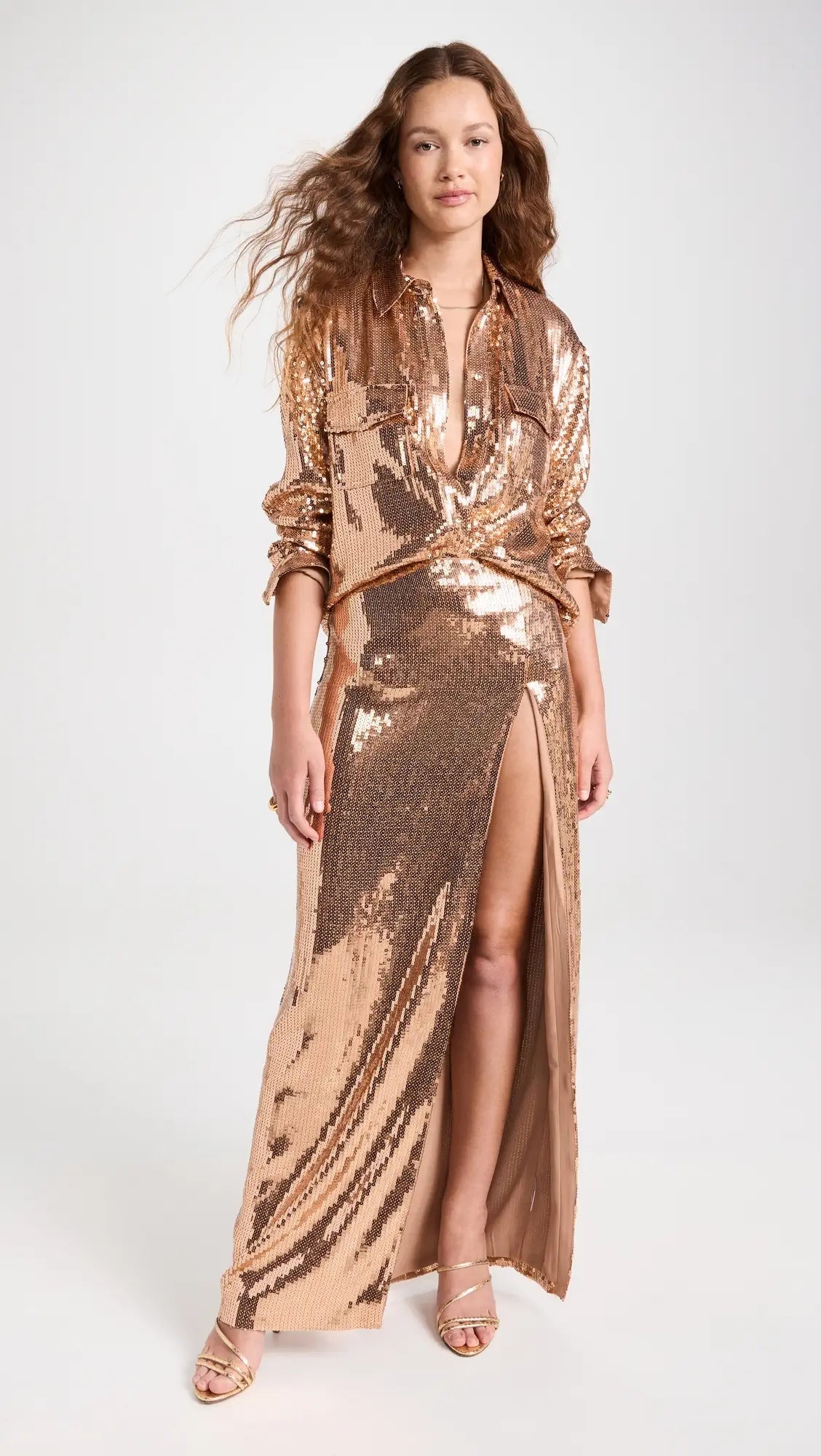 Long Sleeve Sequin Two Piece Midi Dress Gold