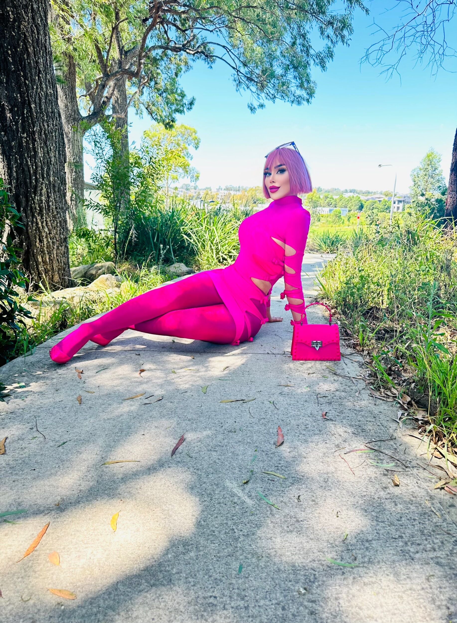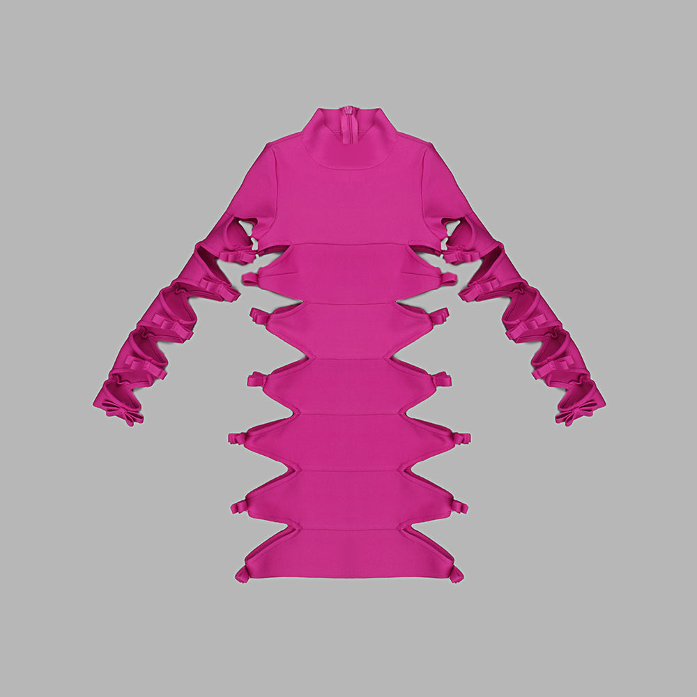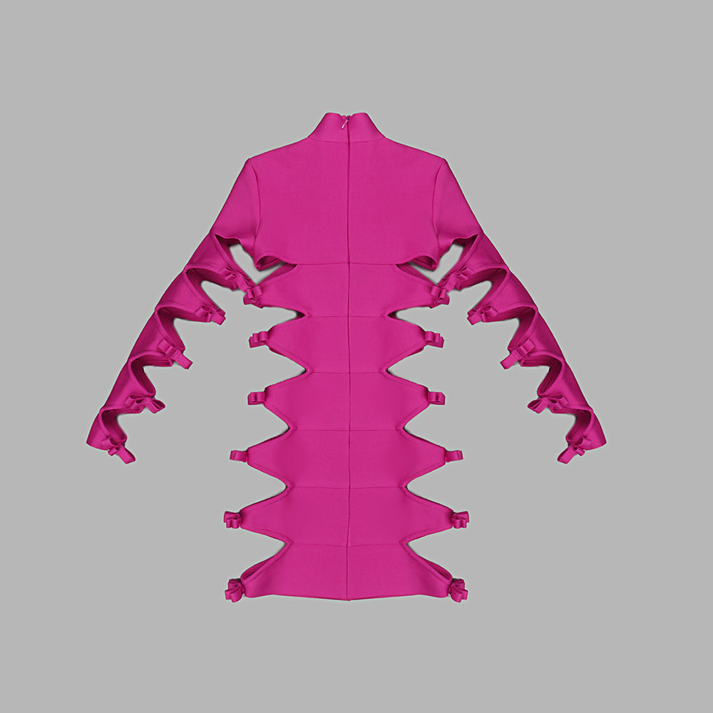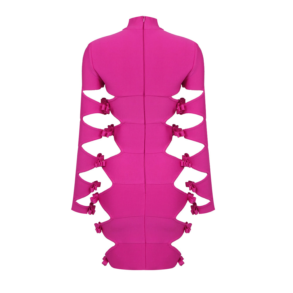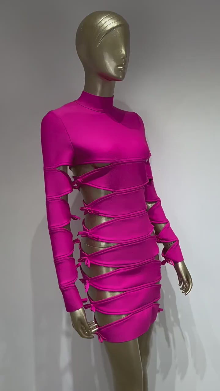 Long Sleeve Side Cut Out Dress Hot Pink HV9160