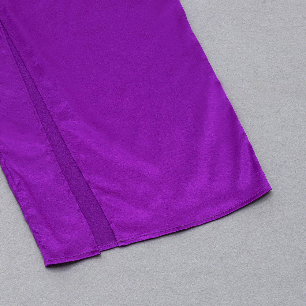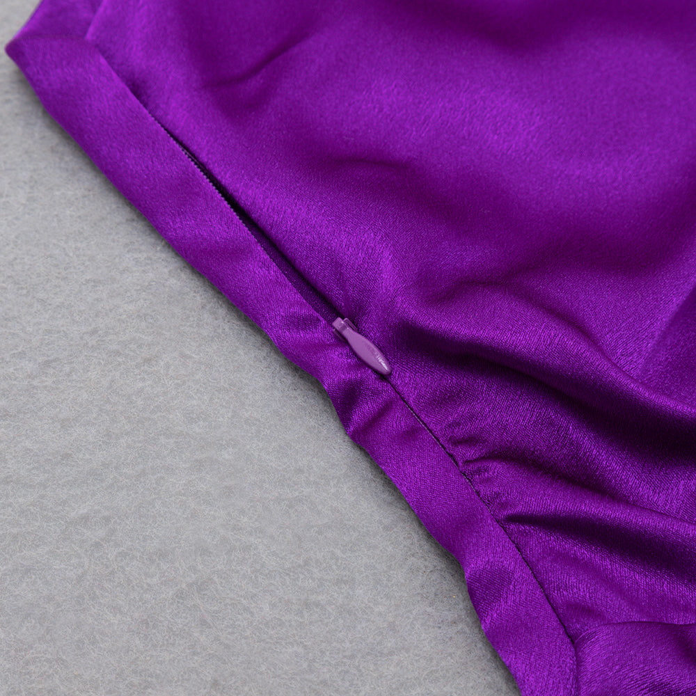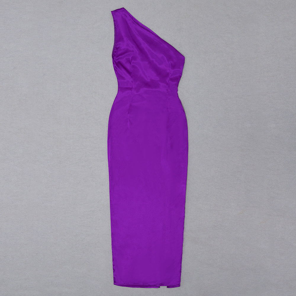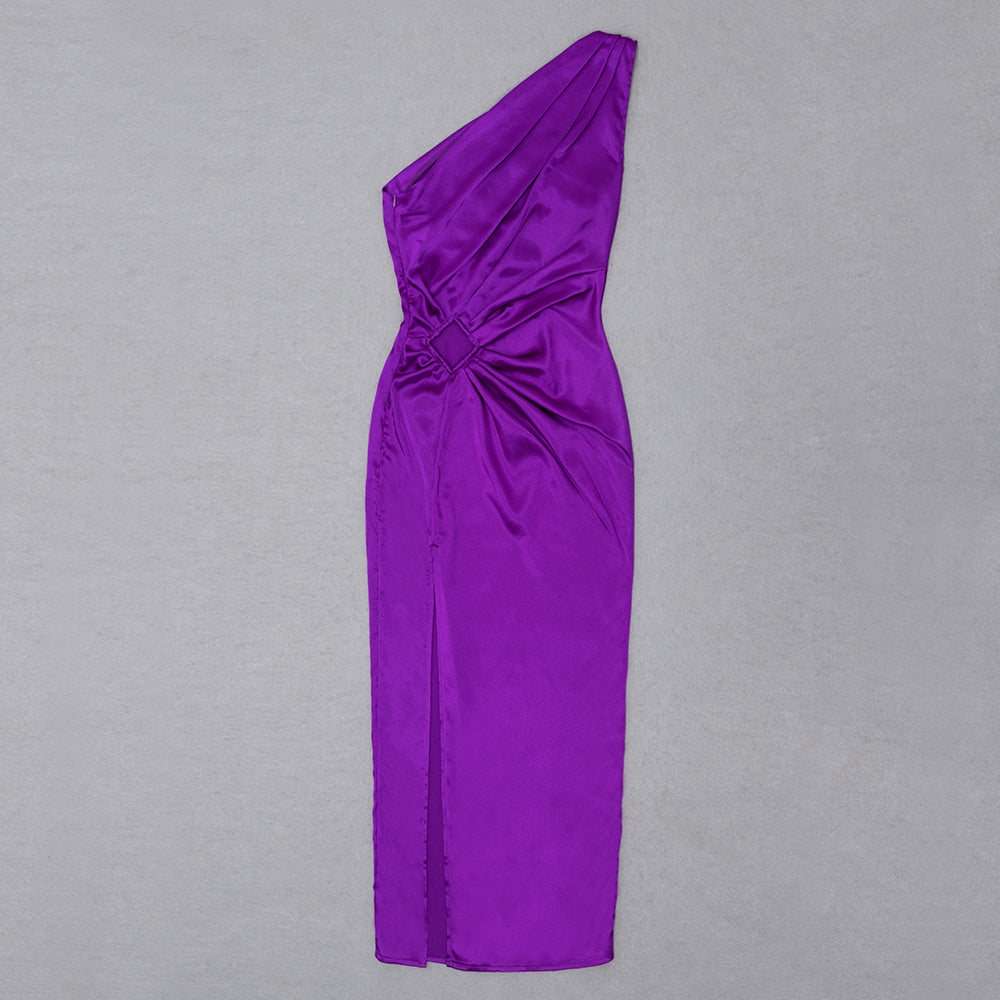 One Shoulder Draped Maxi Silk Dress Purple