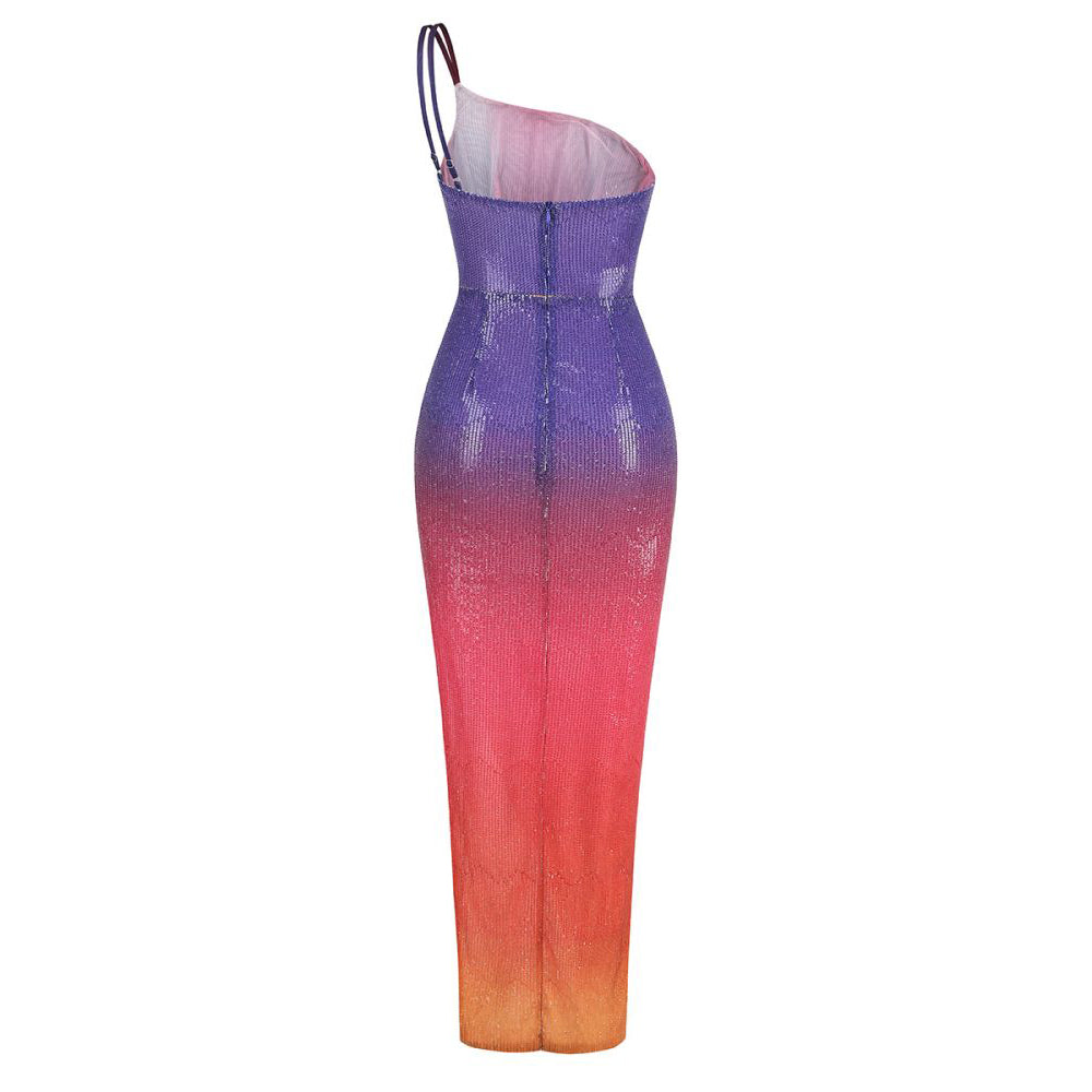 One Shoulder Sequin Maxi Dress Purple HV1024