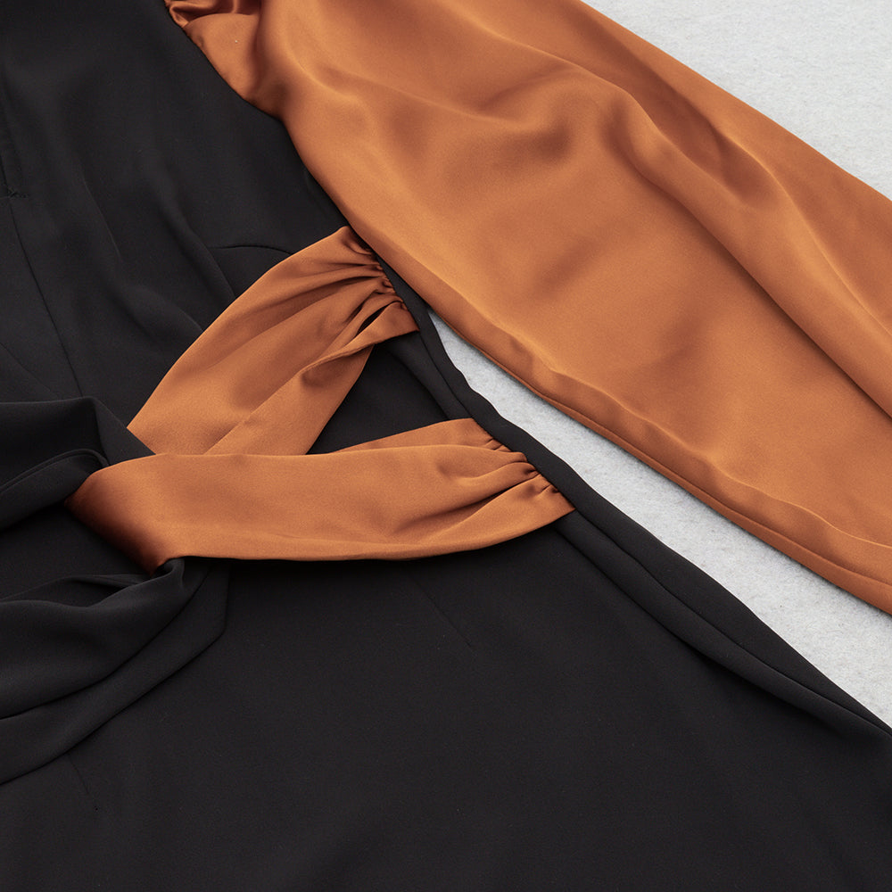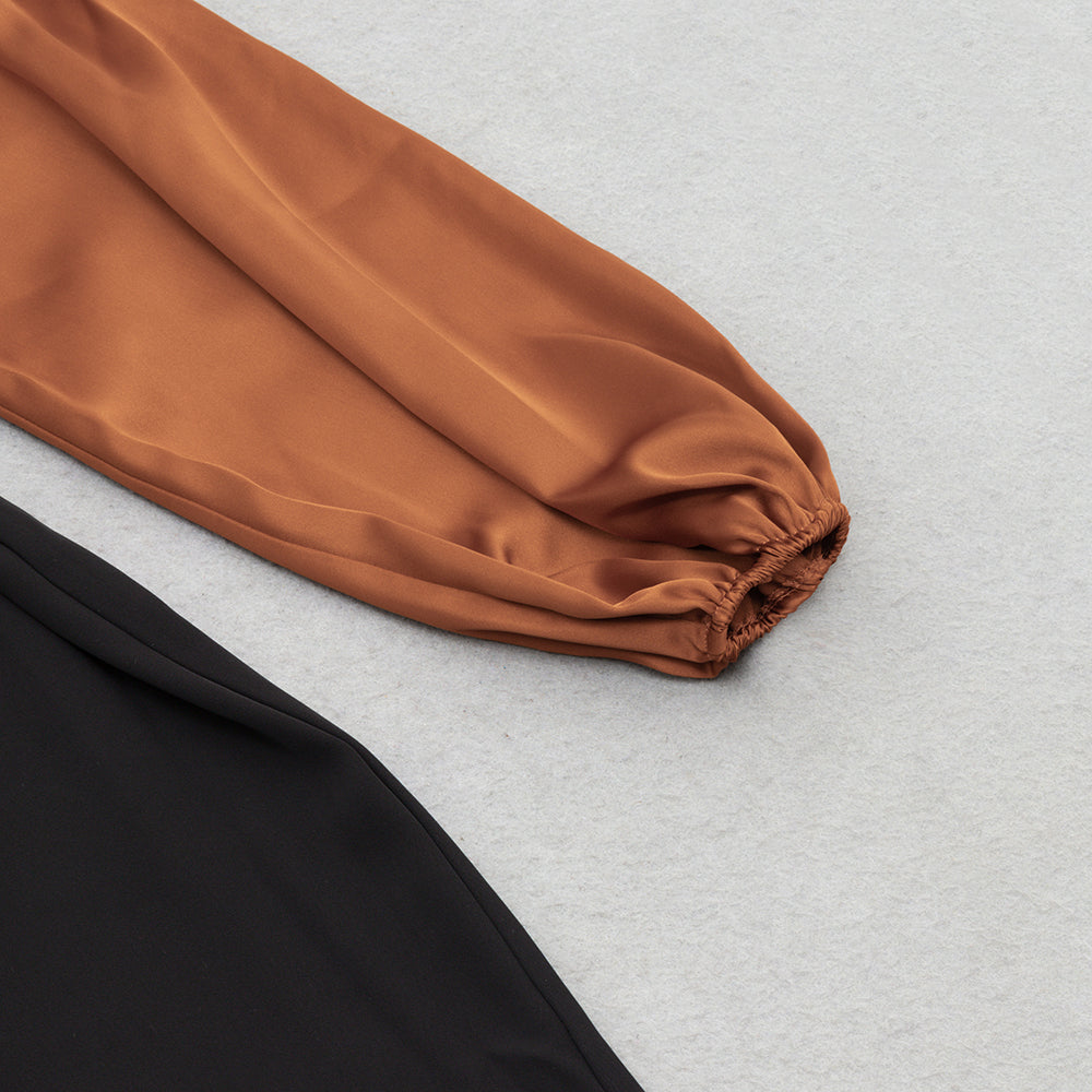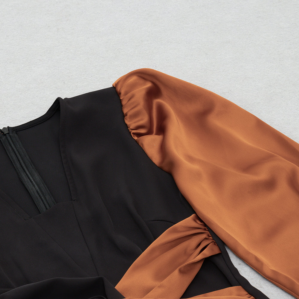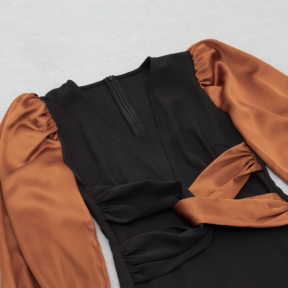 Puff Long Sleeve Midi Dress Black Brown