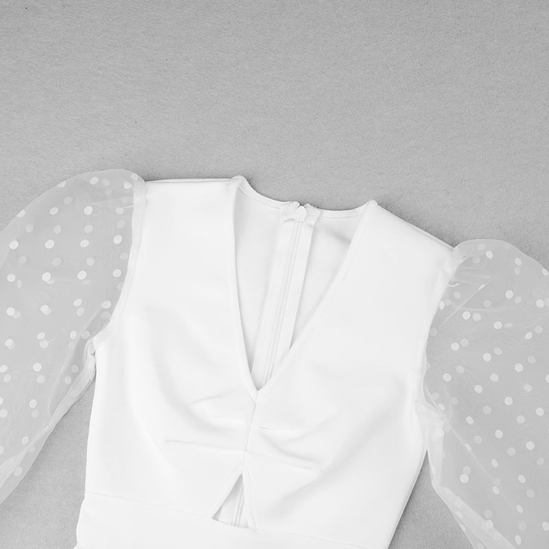Puff Long Sleeve Midi Dress White
