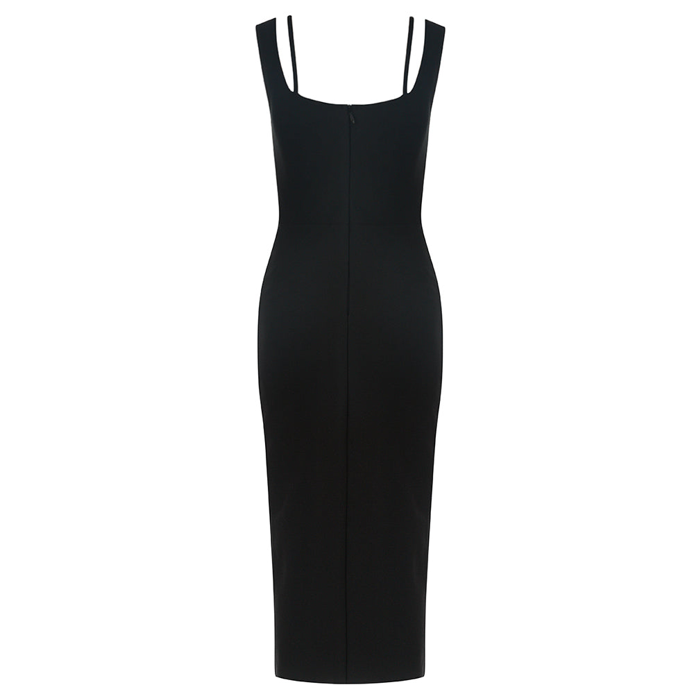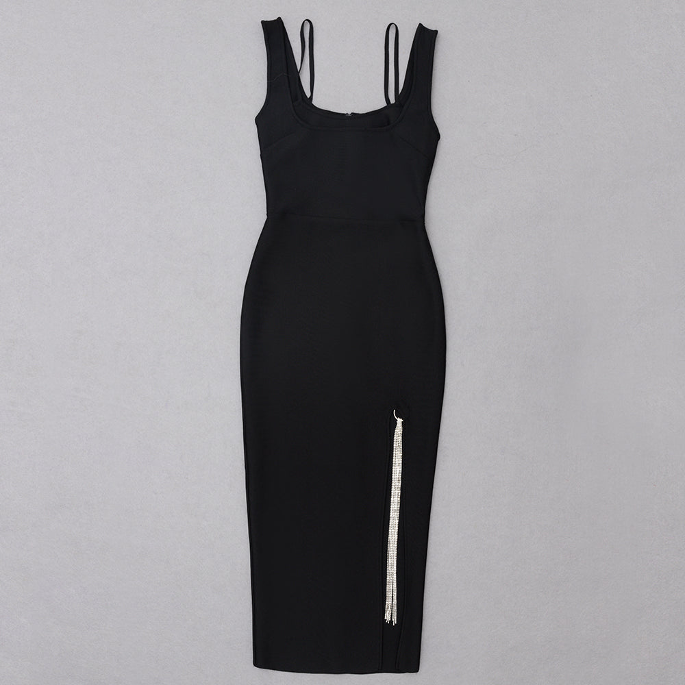 Rhinestone Tassel Detail Midi Dress Black V8671