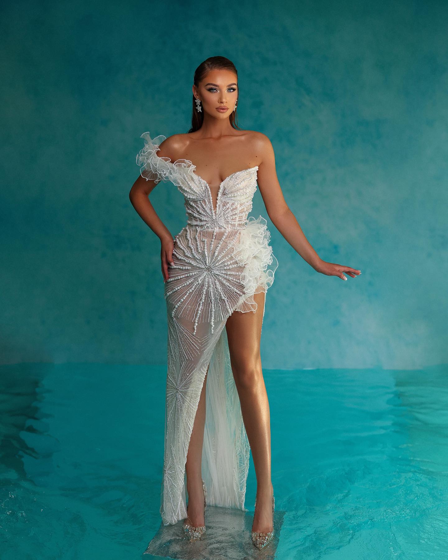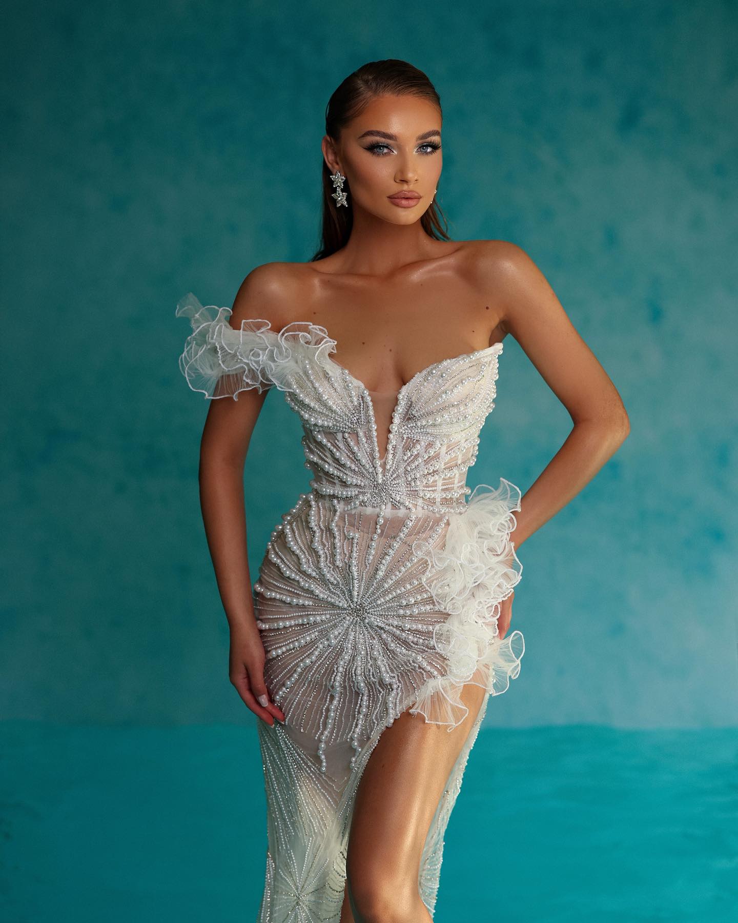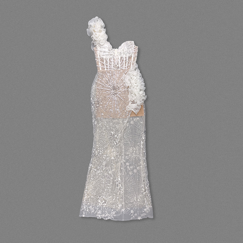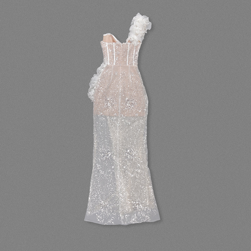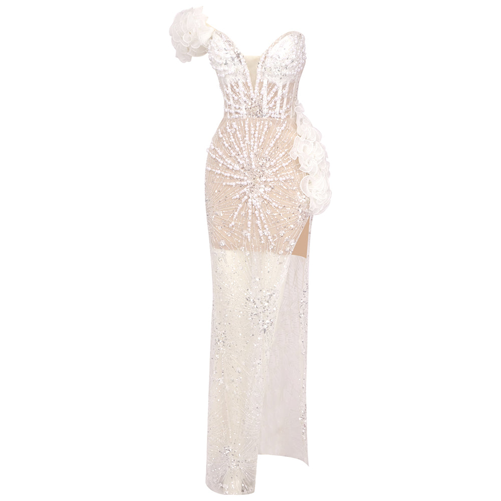 Ruffle Bardot Embellished Maxi Dress White HV1725