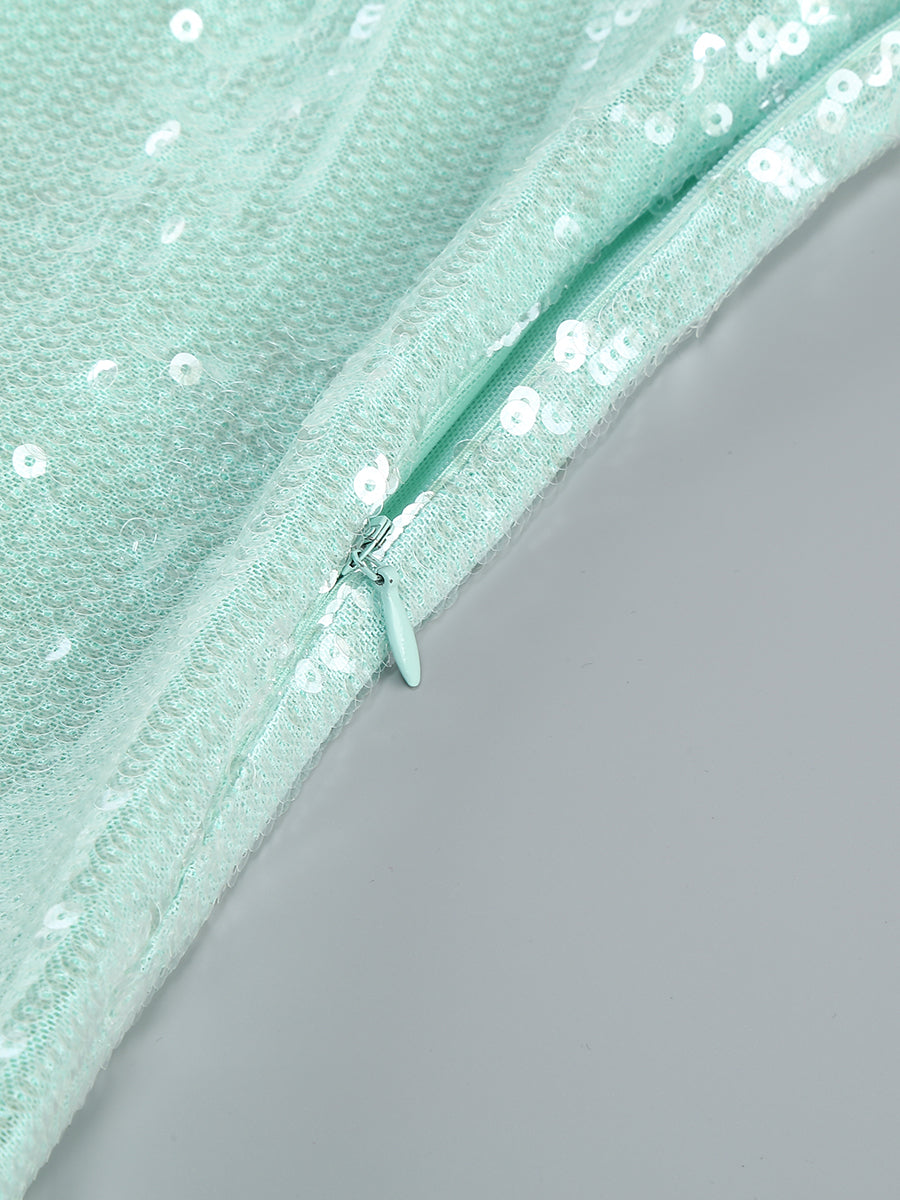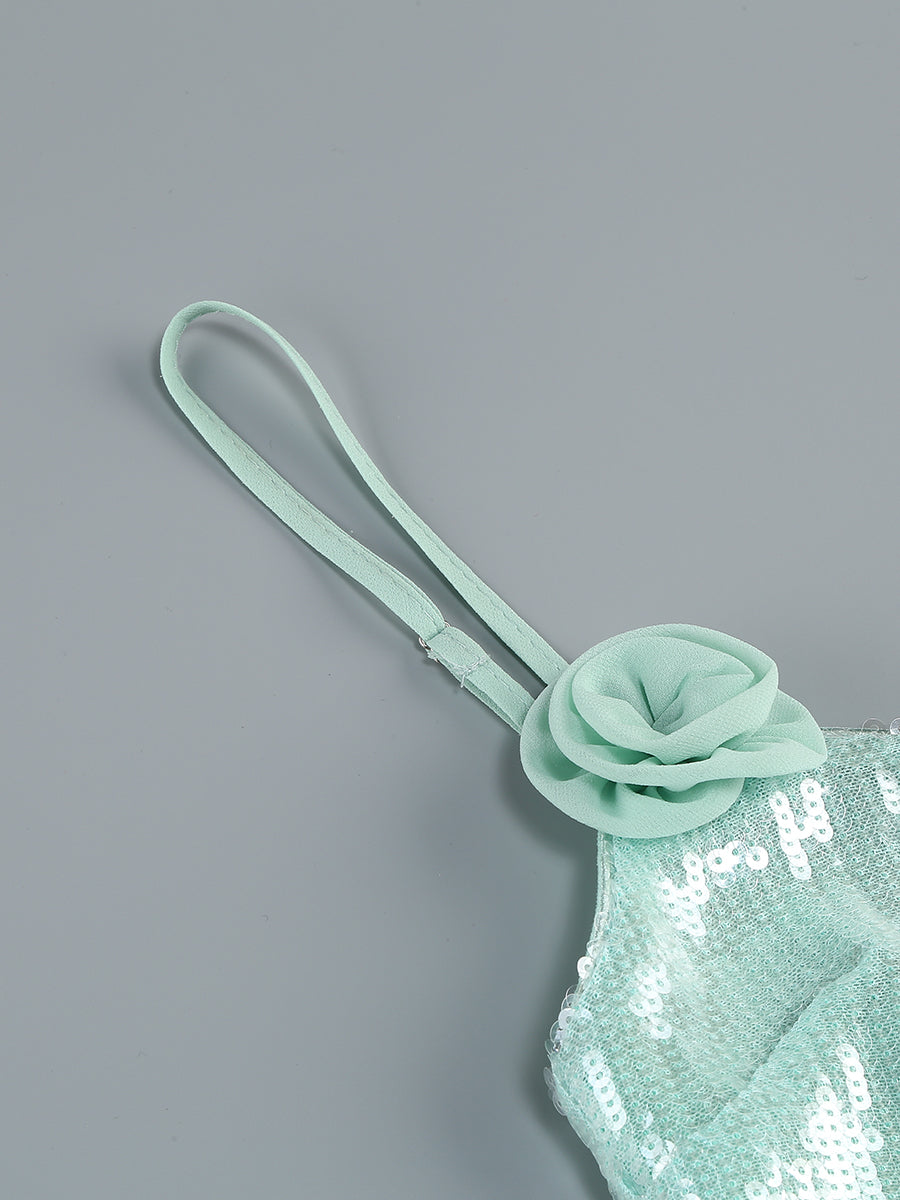 Sequin Floral Draped Corset Dress Green