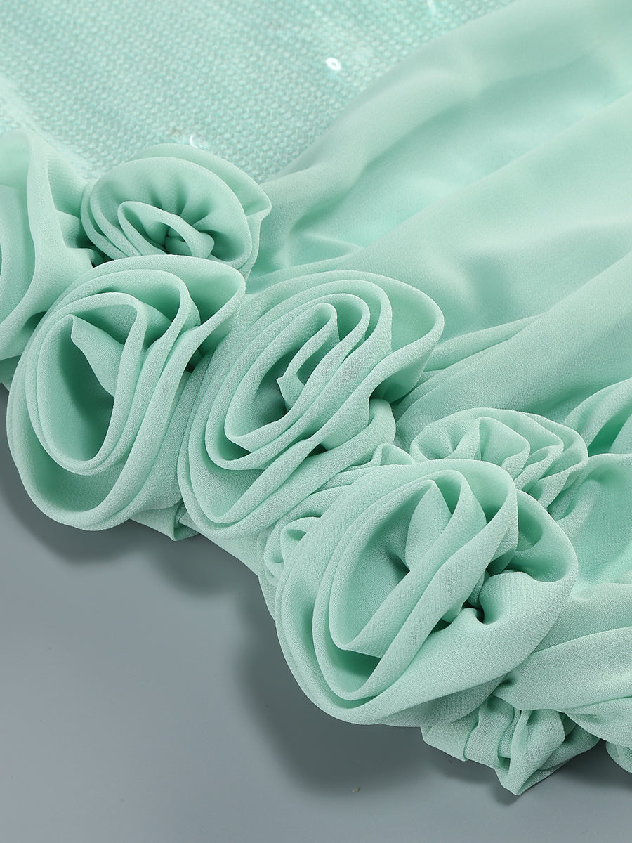 Sequin Floral Draped Corset Dress Green HV2207