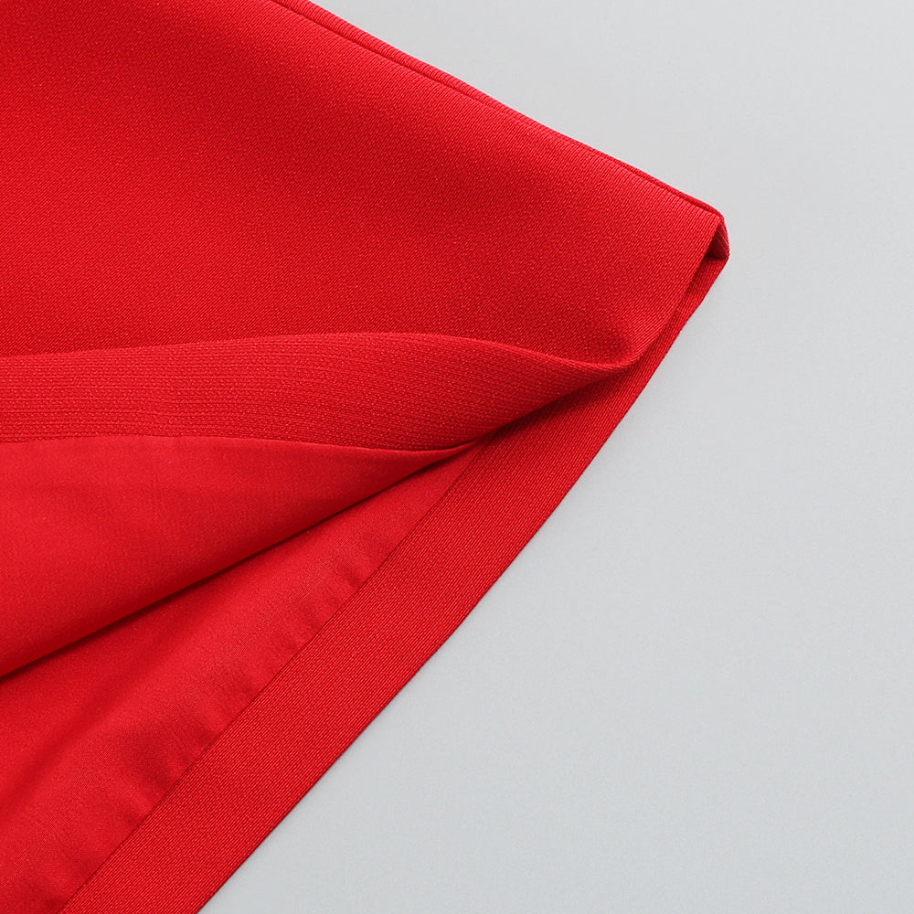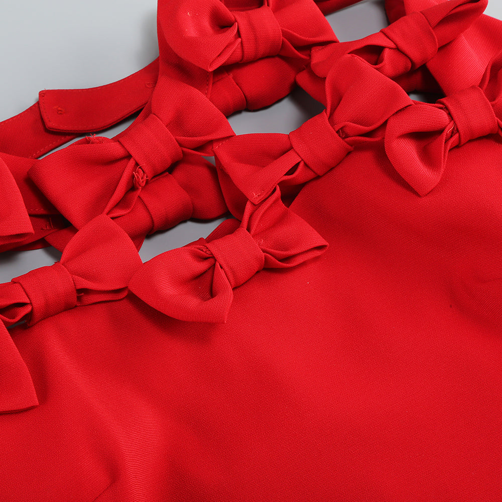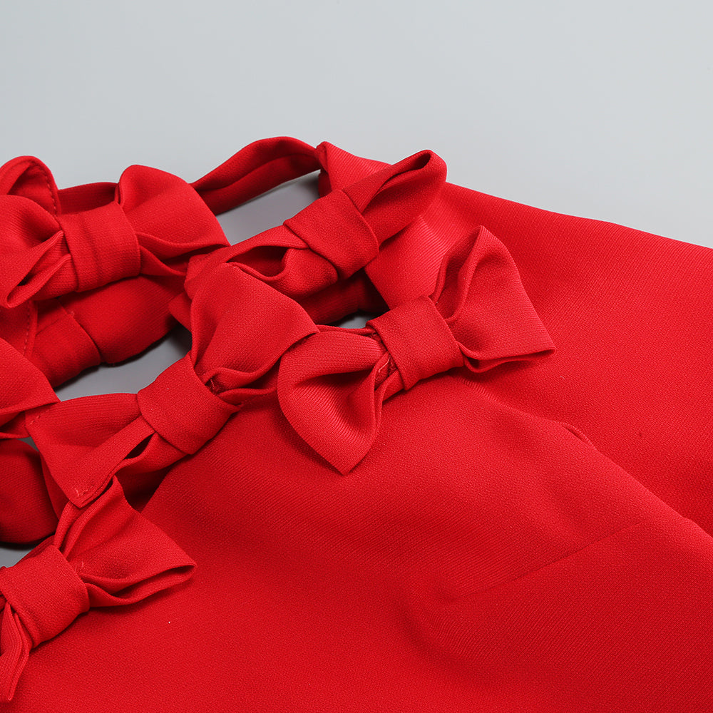 Short Sleeve Bow Detail A Line Dress Red HV1361