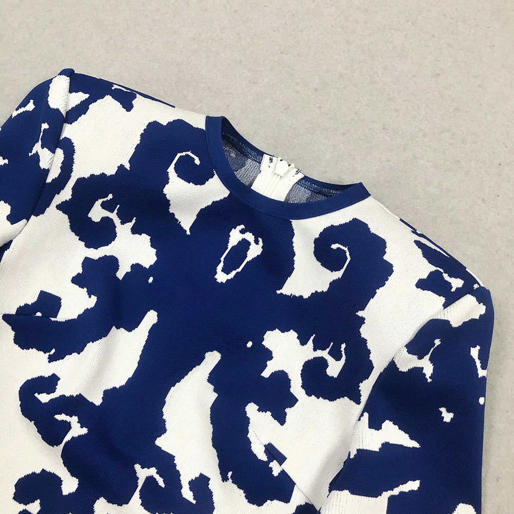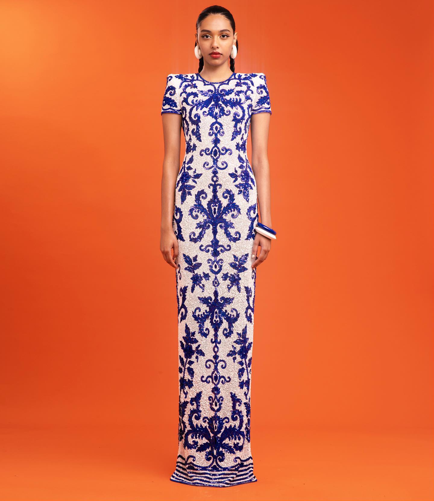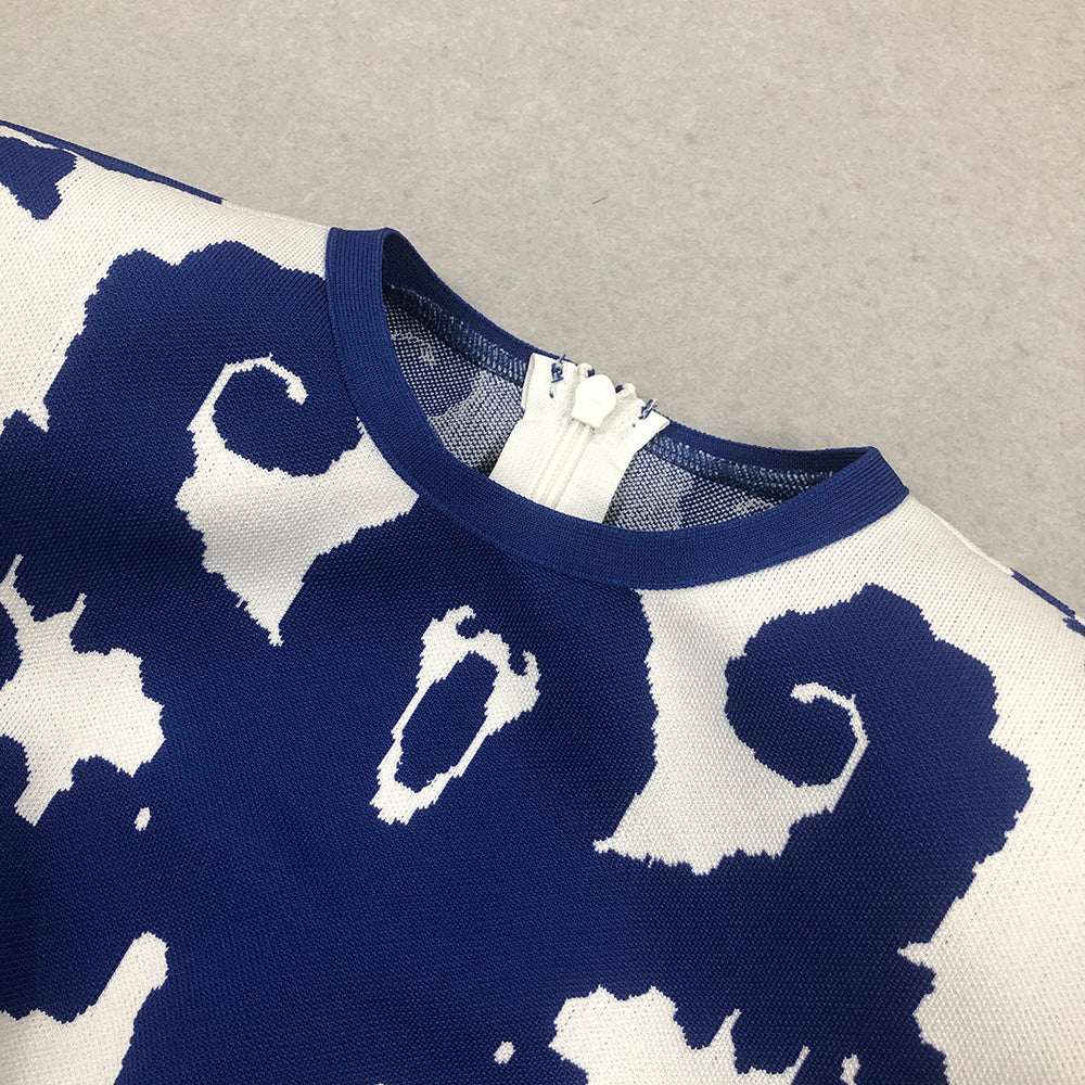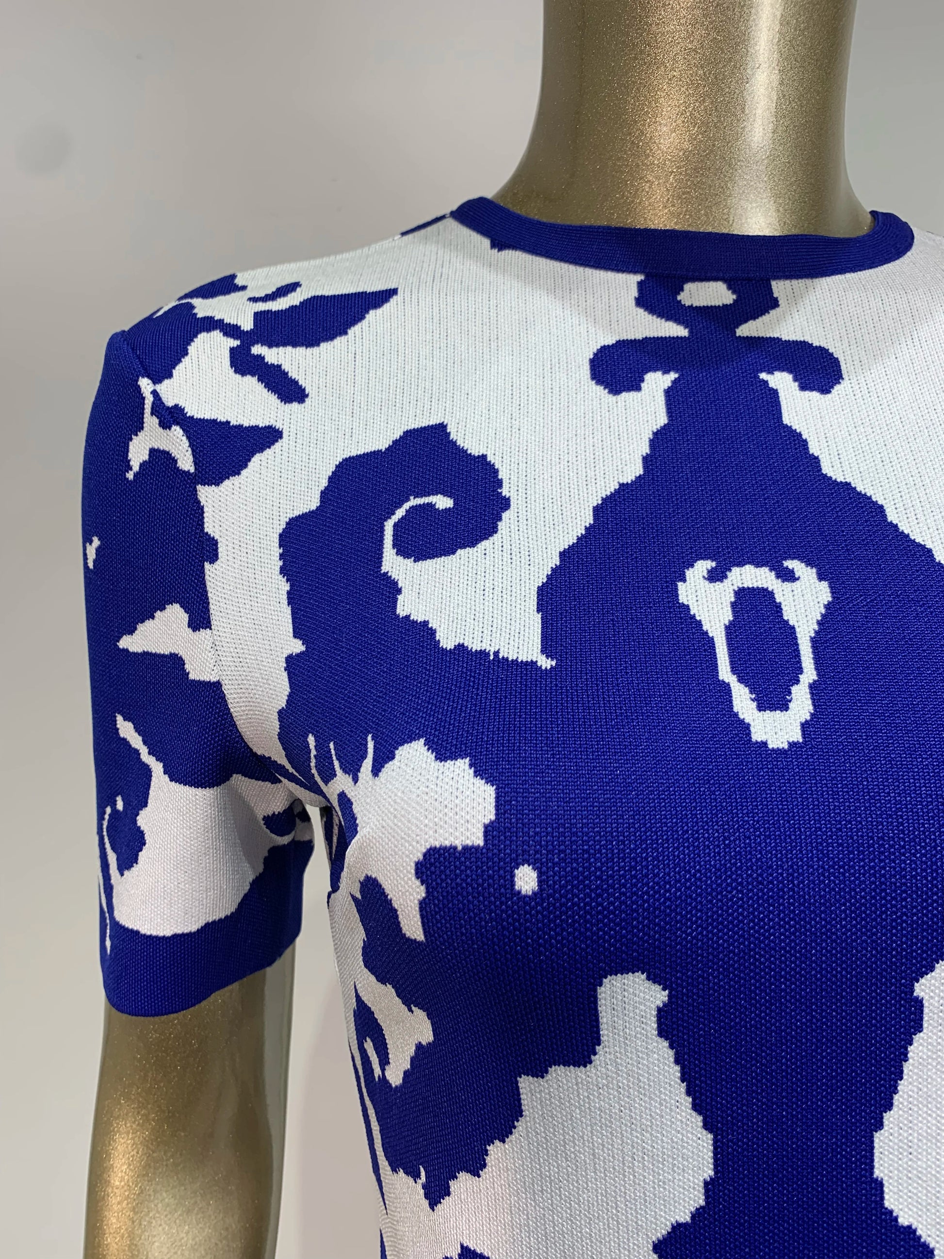 Short Sleeve Printed Maxi Dress Blue White HV1737