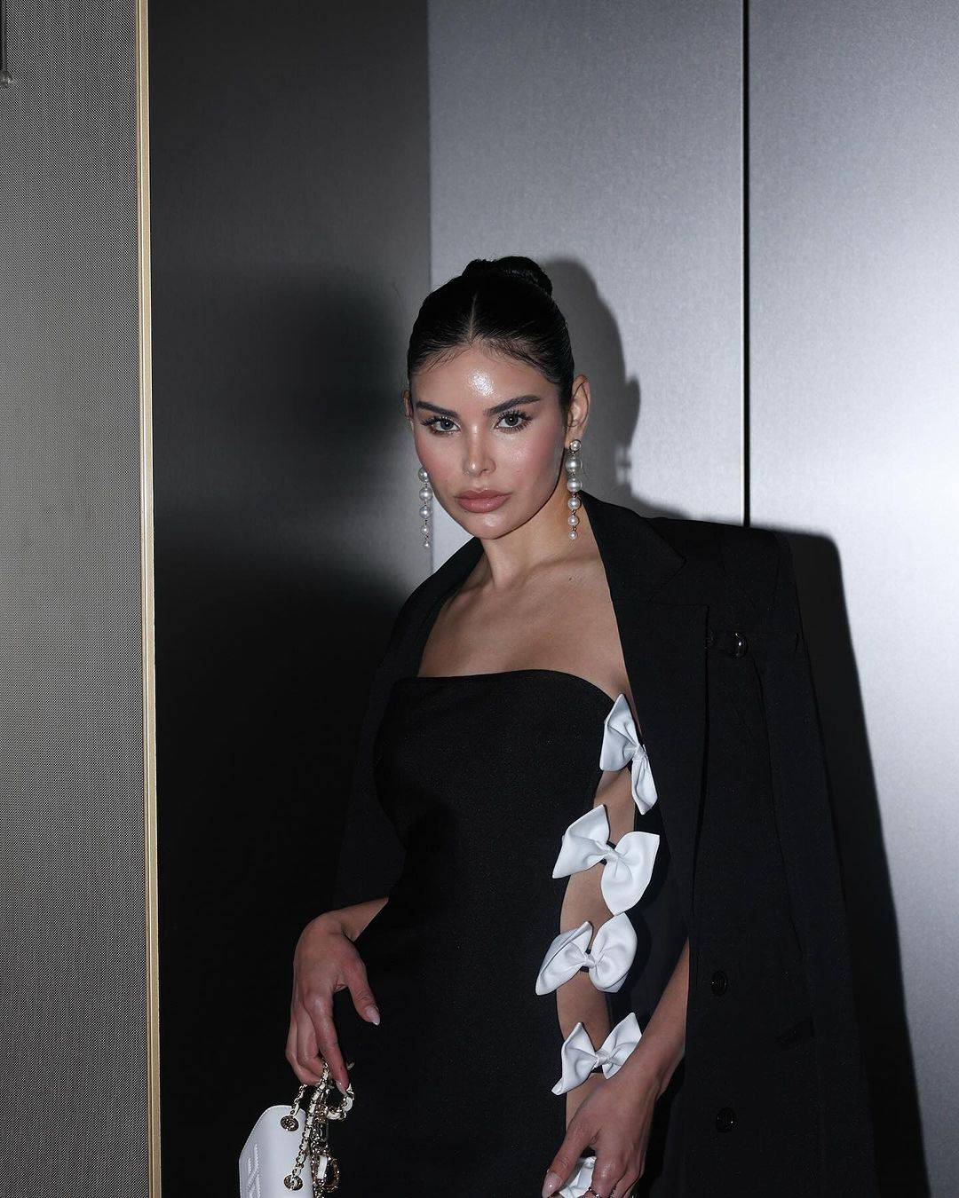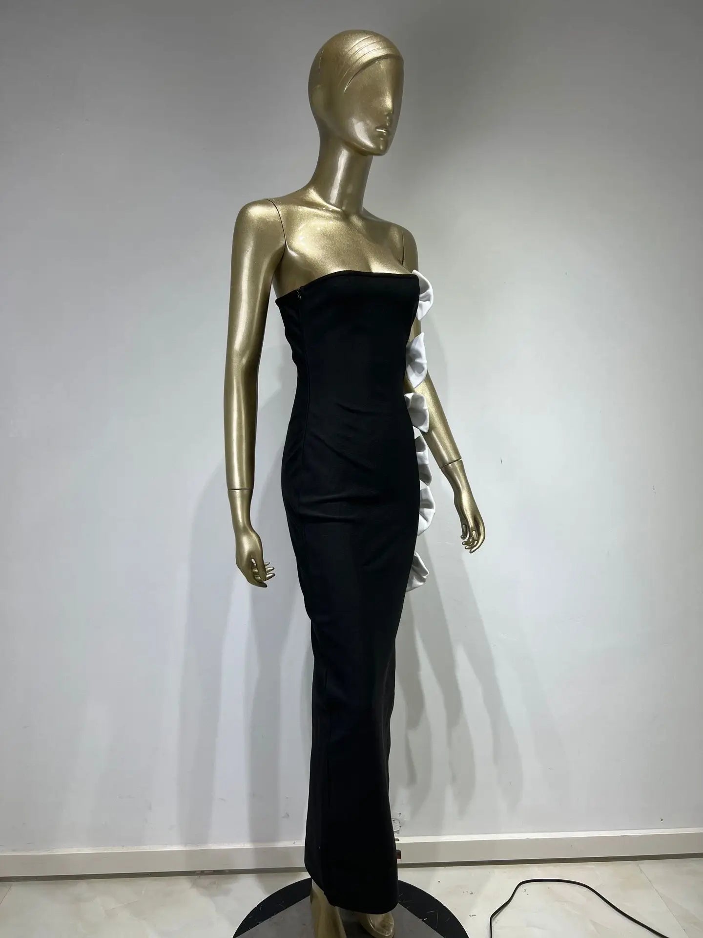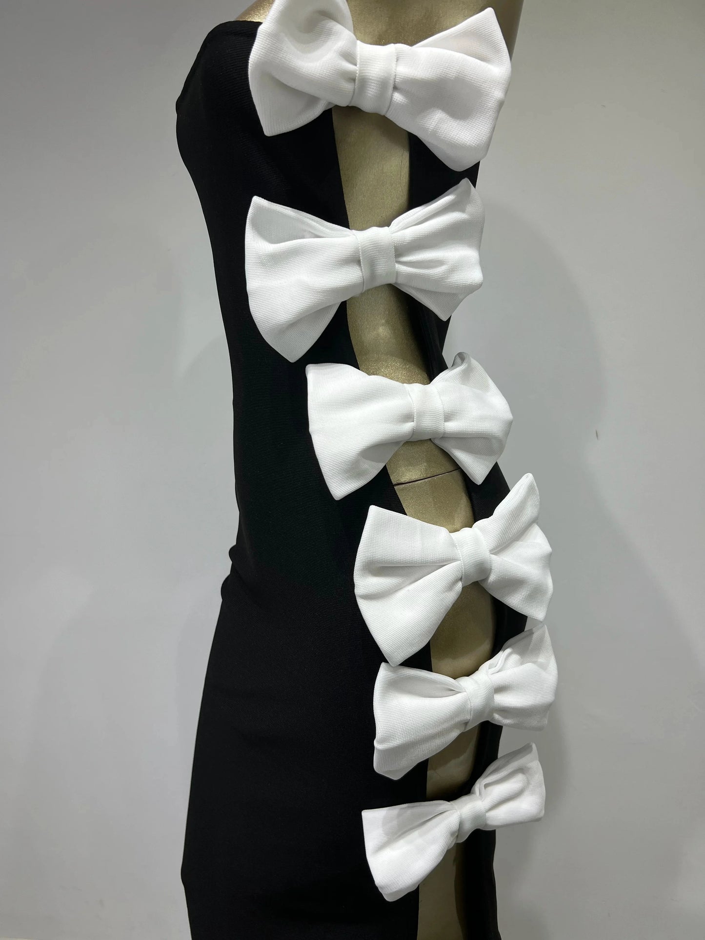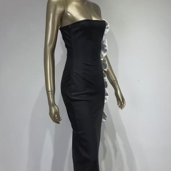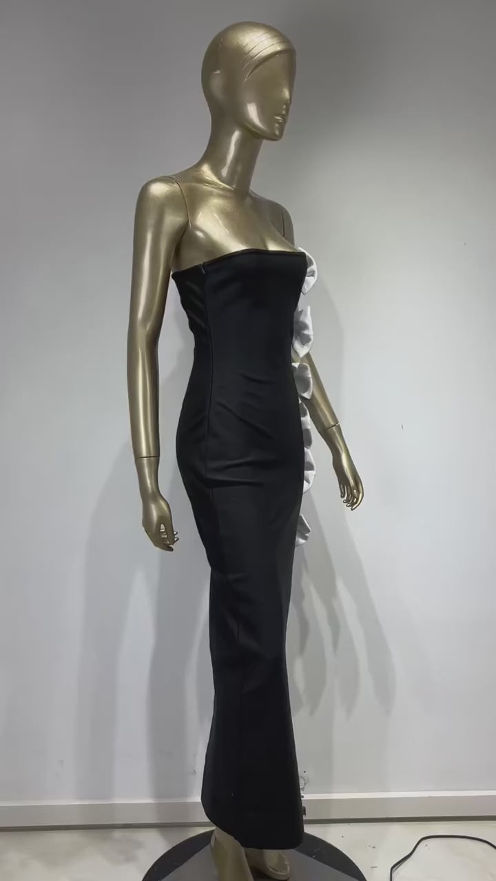 Strapless Bow Detail Maxi Velvet Dress Black White