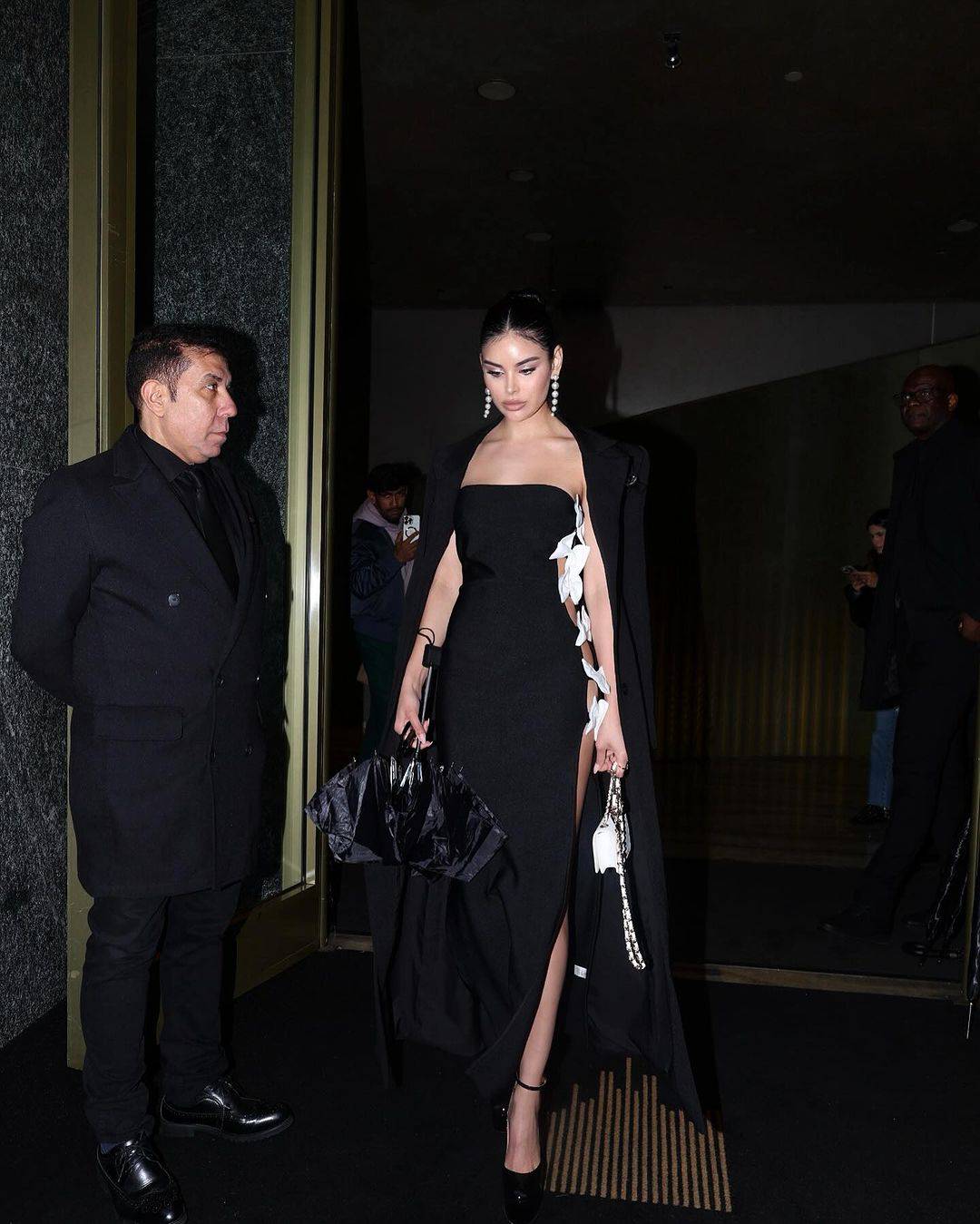 Strapless Bow Detail Maxi Velvet Dress Black White HV1944