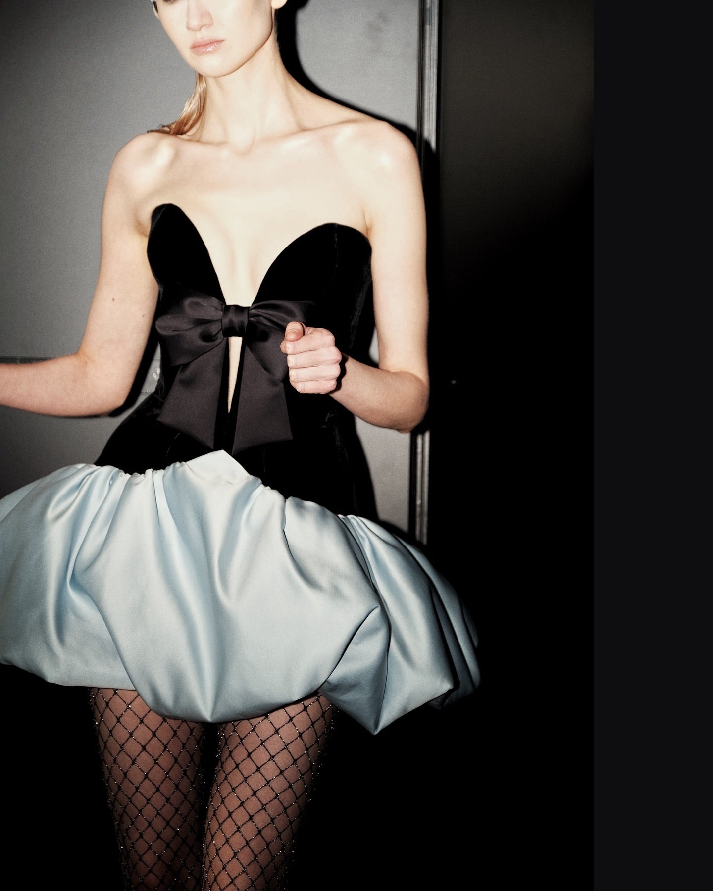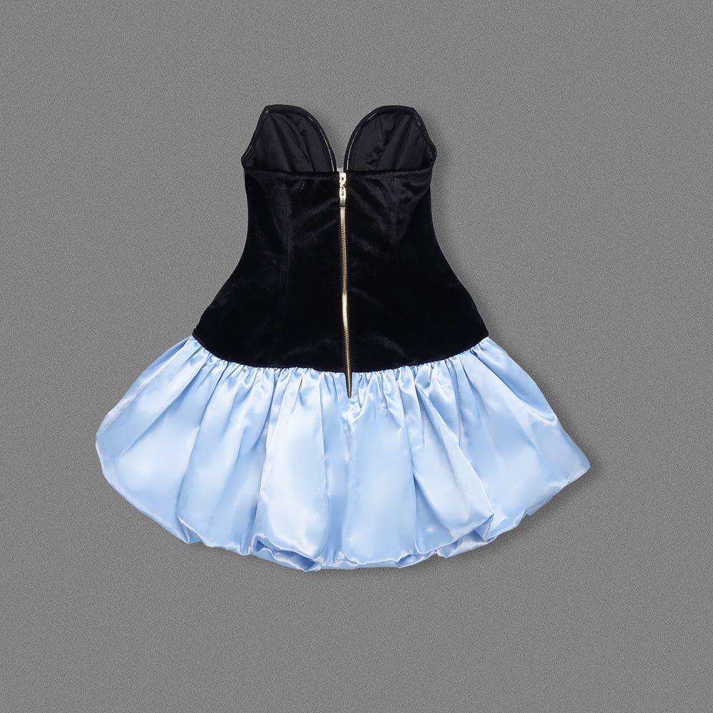 Strapless Bow Detail Puff Dress Black Blue HV2617