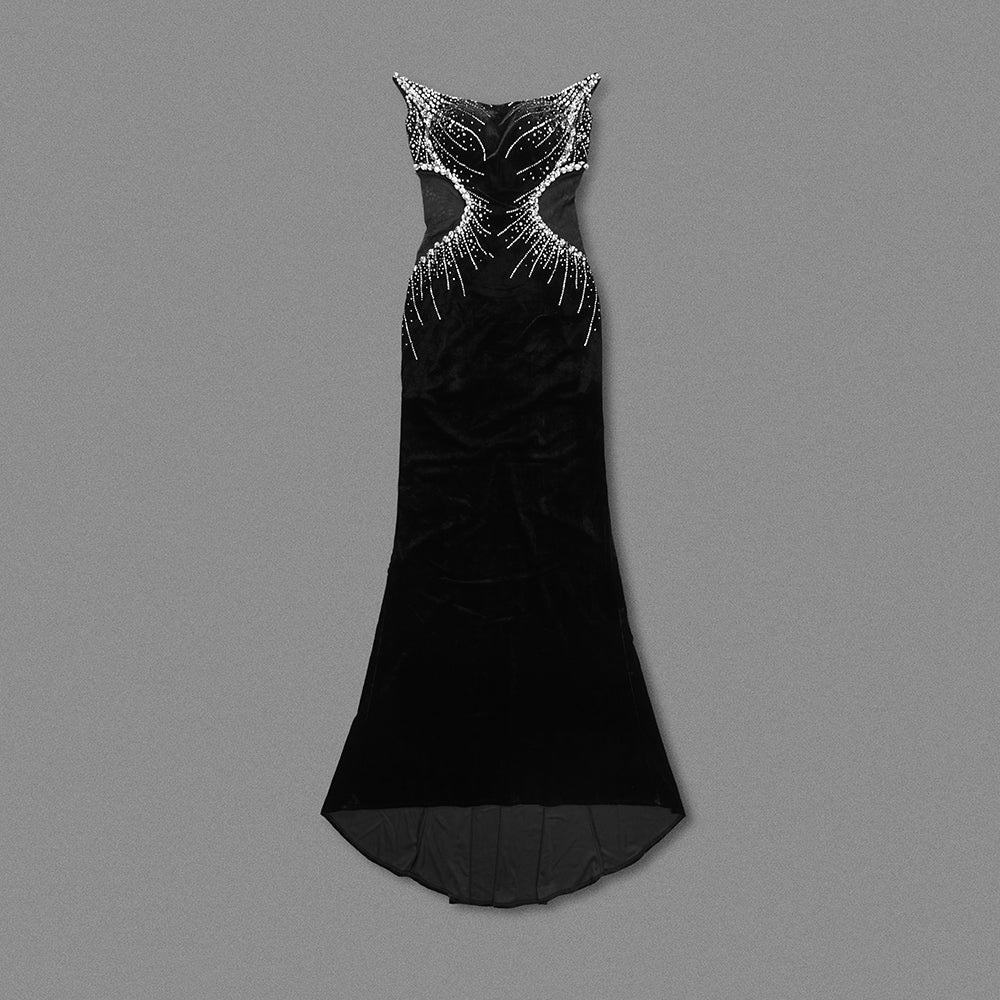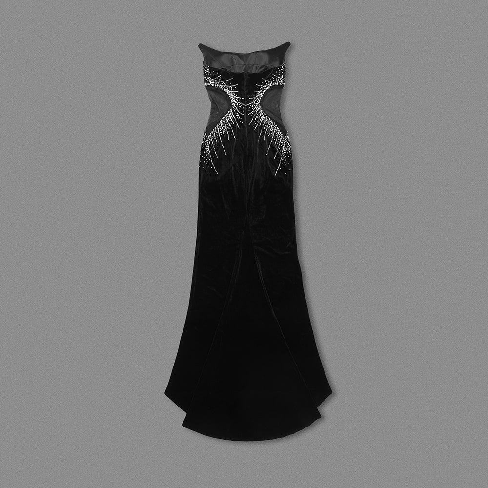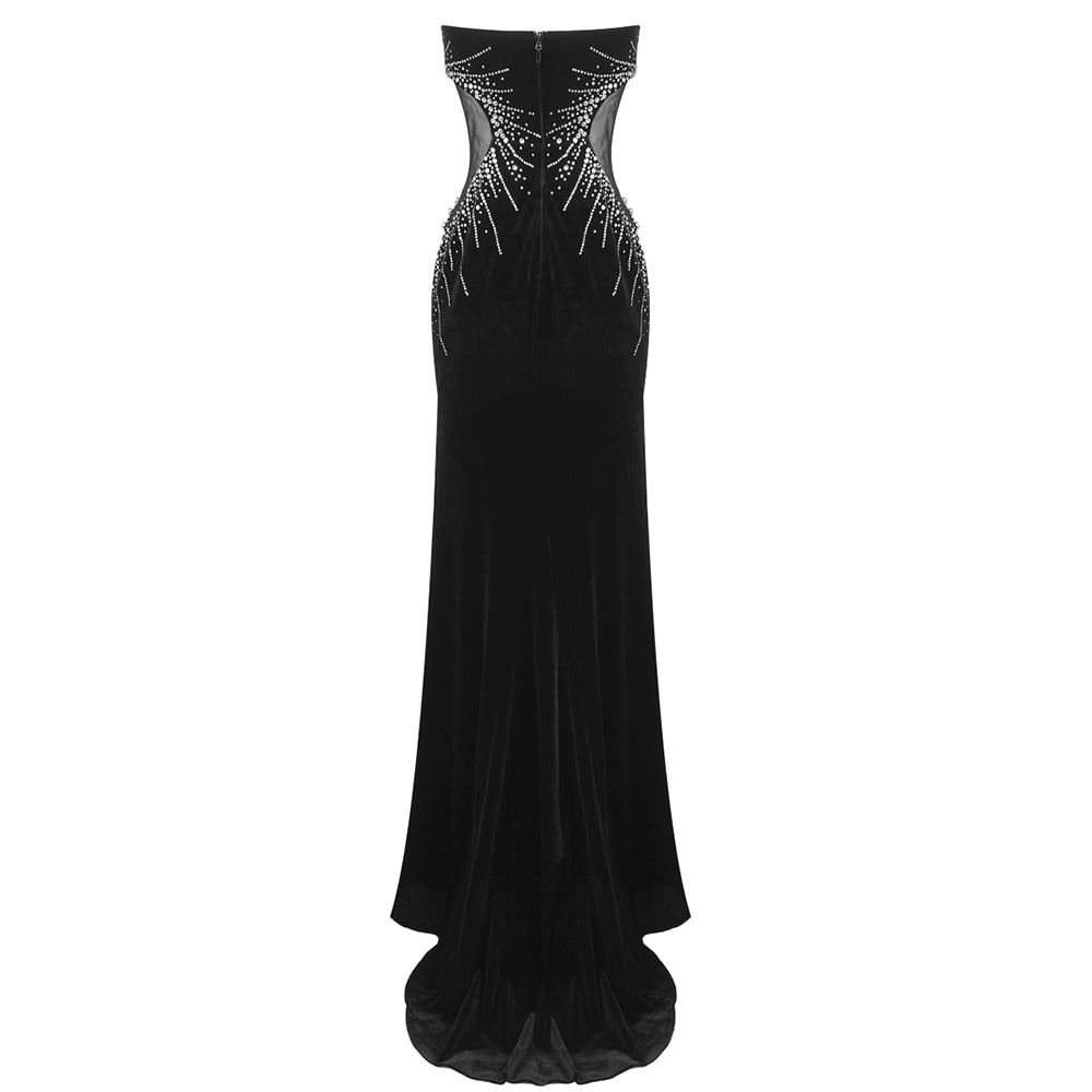 Strapless Crystal Mesh Maxi Dress Black HV1726