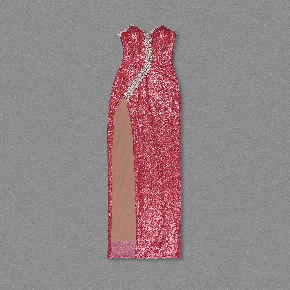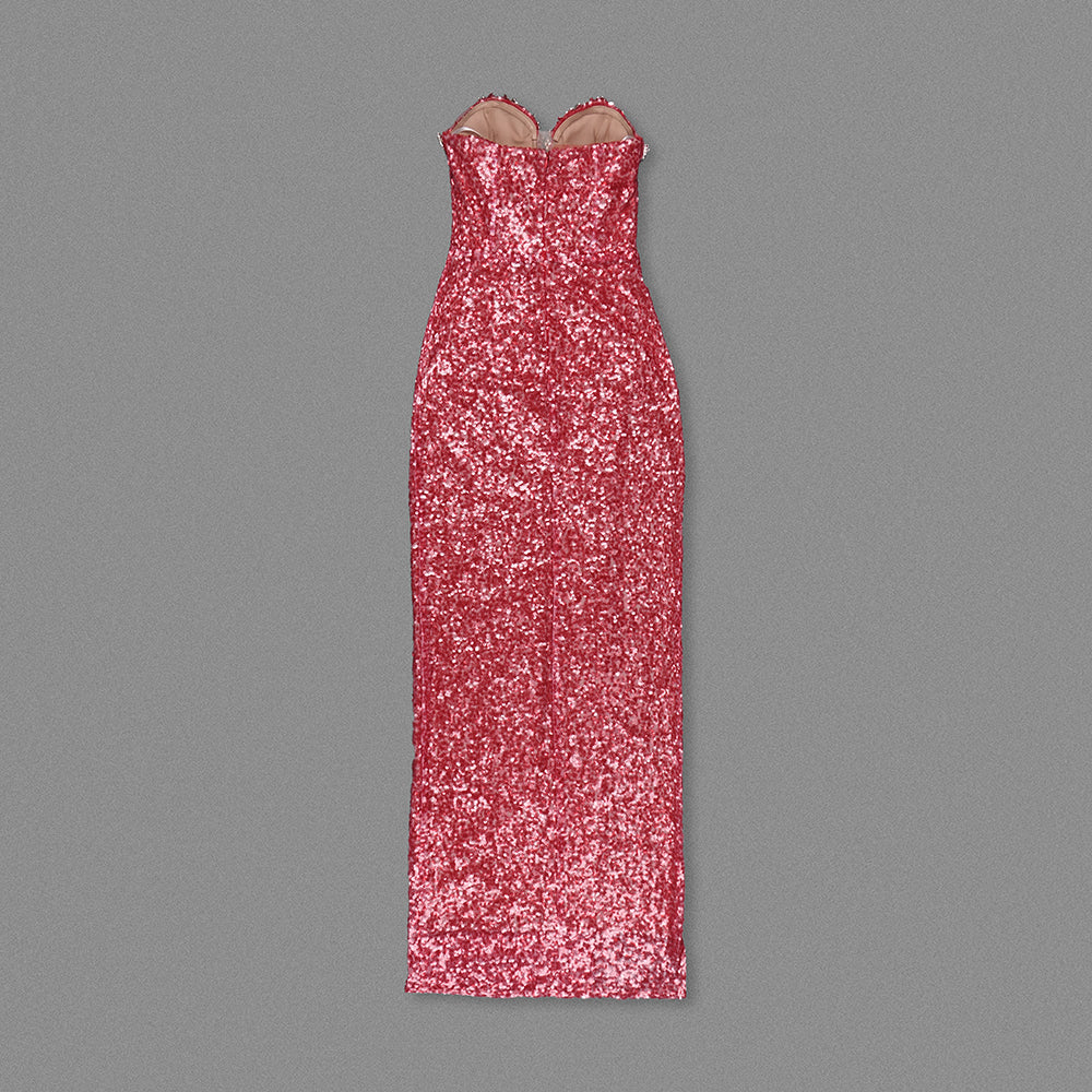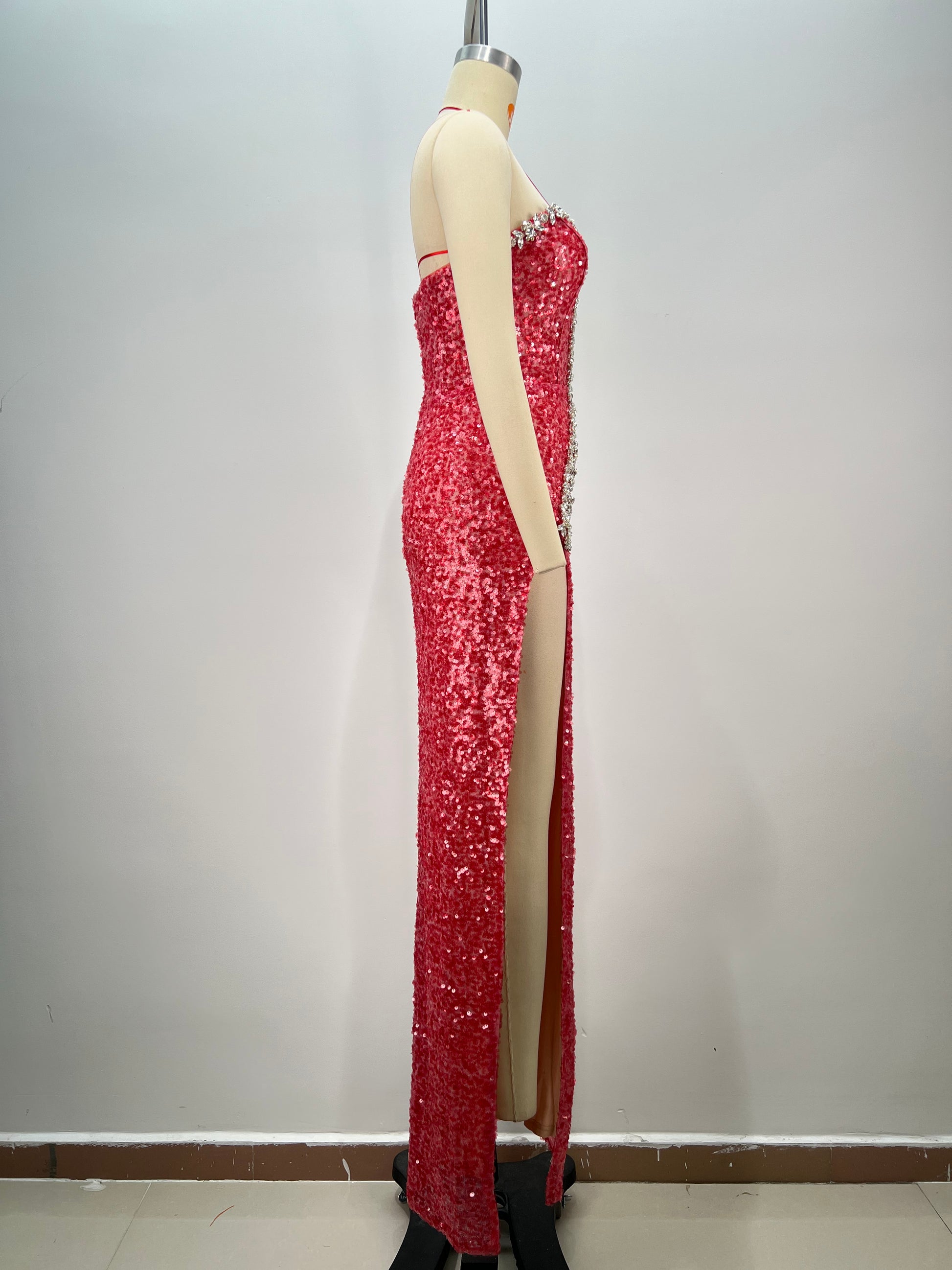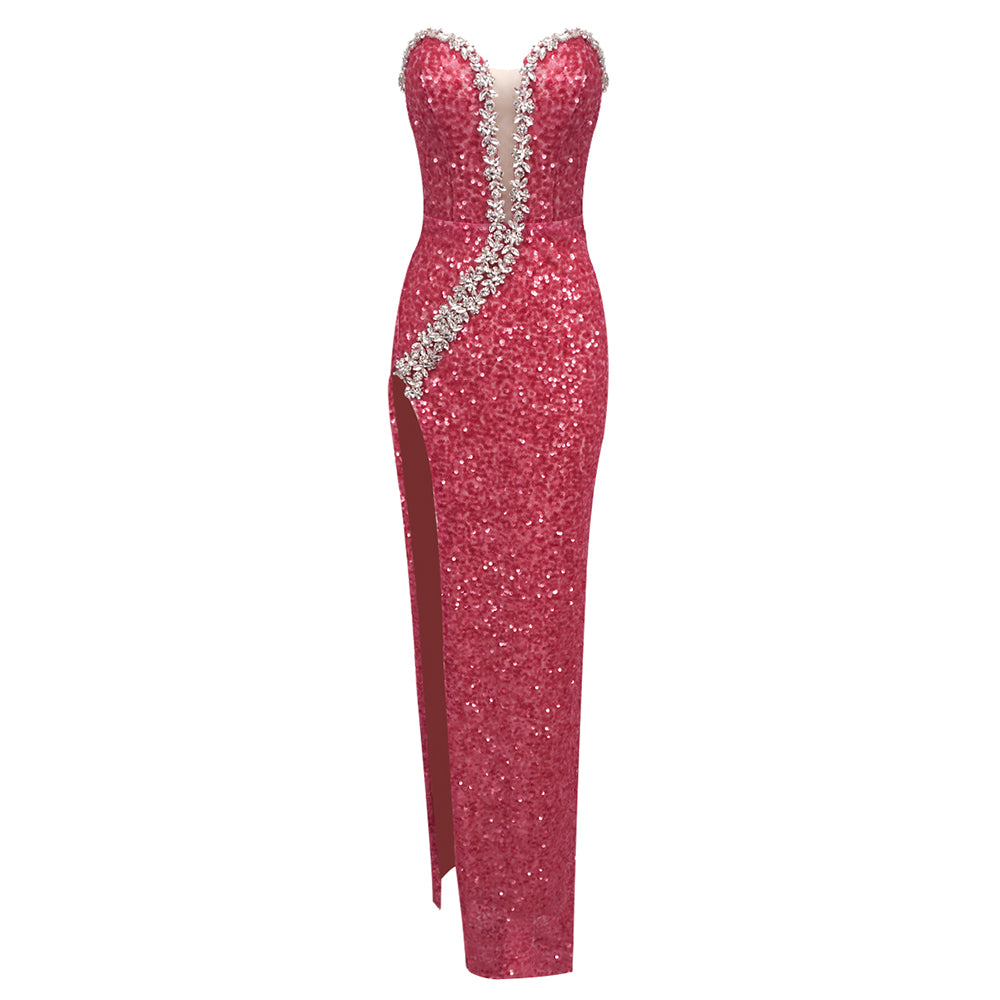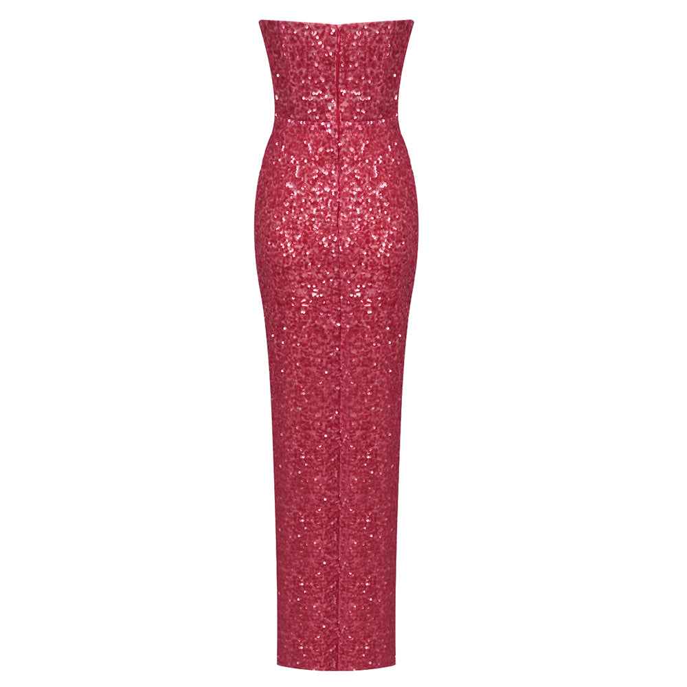 Strapless Crystal Sequin Maxi Dress Red HV1755