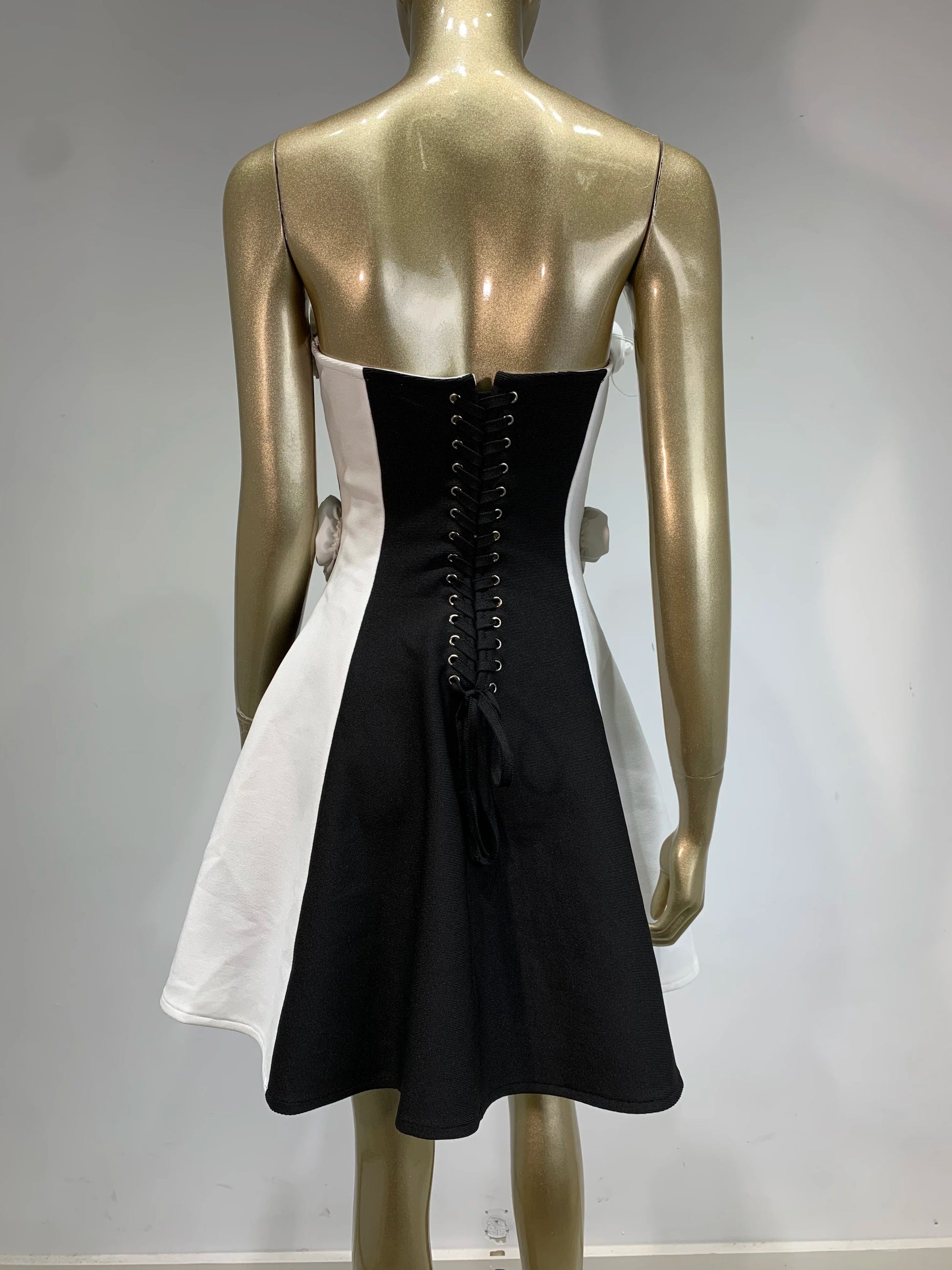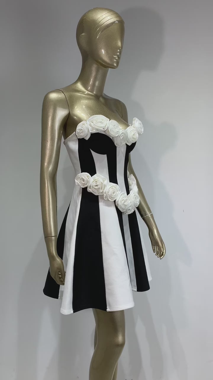 Strapless Floral Corset A Line Dress Black White HV2142