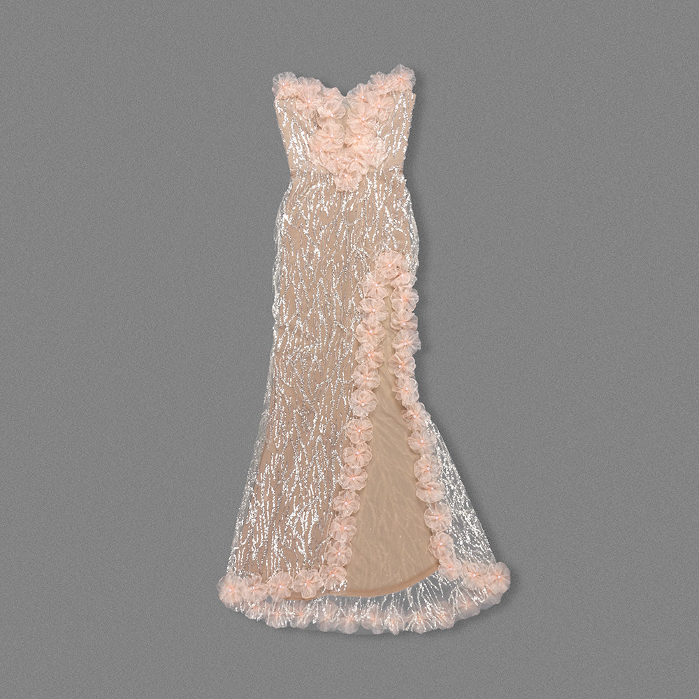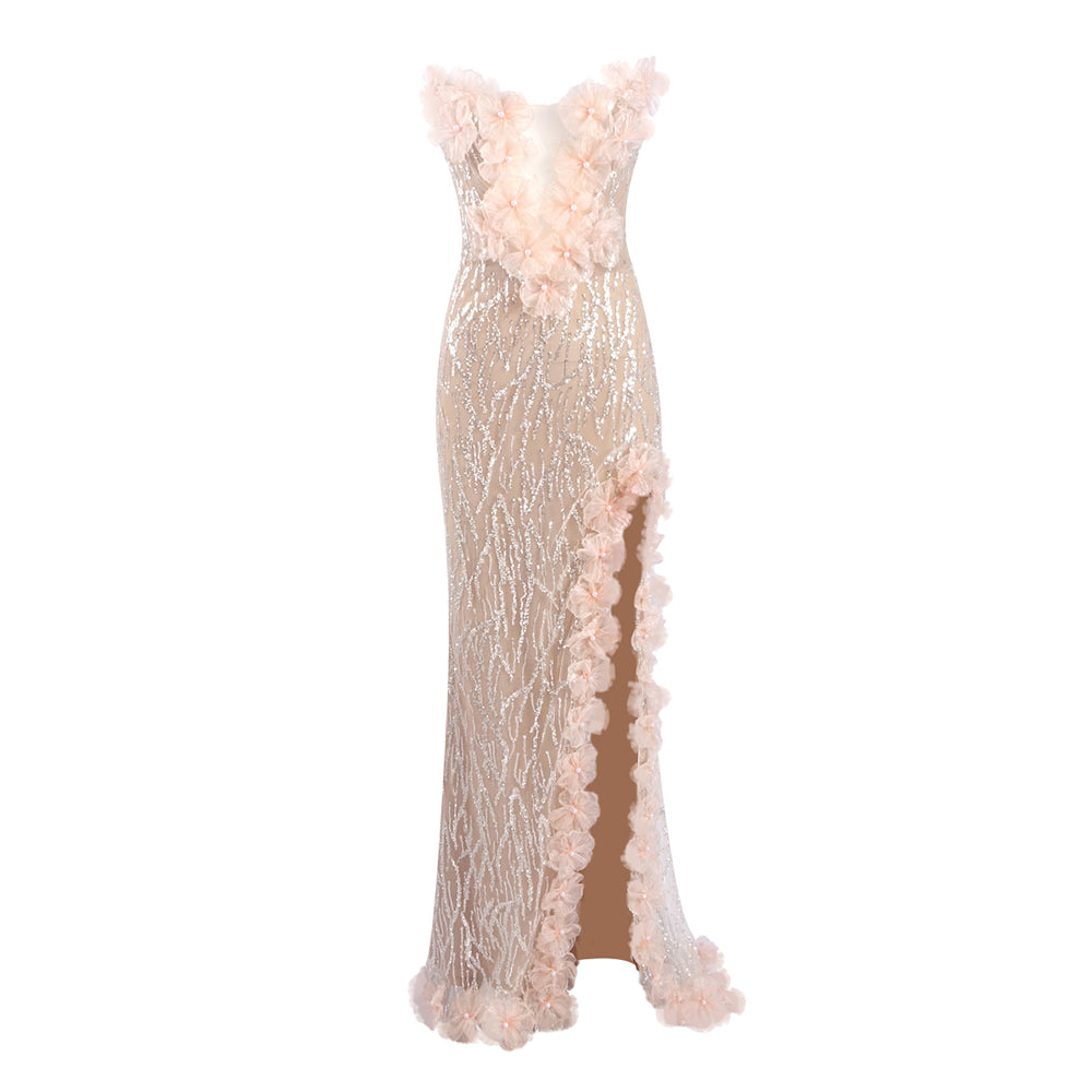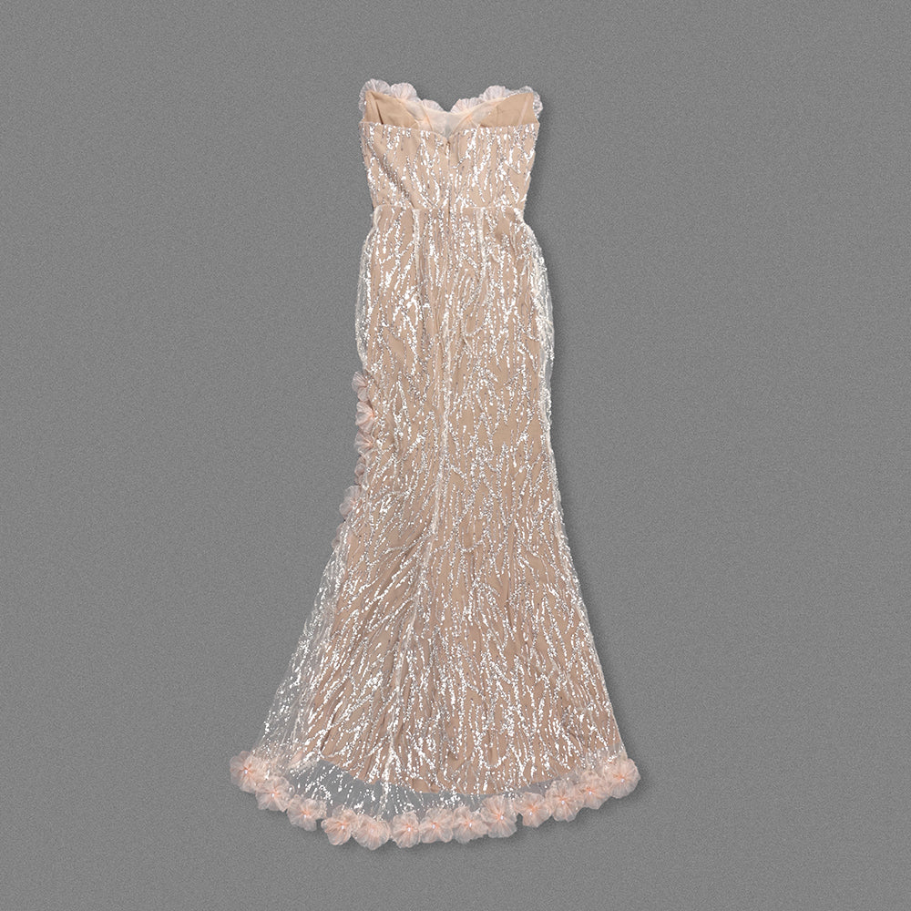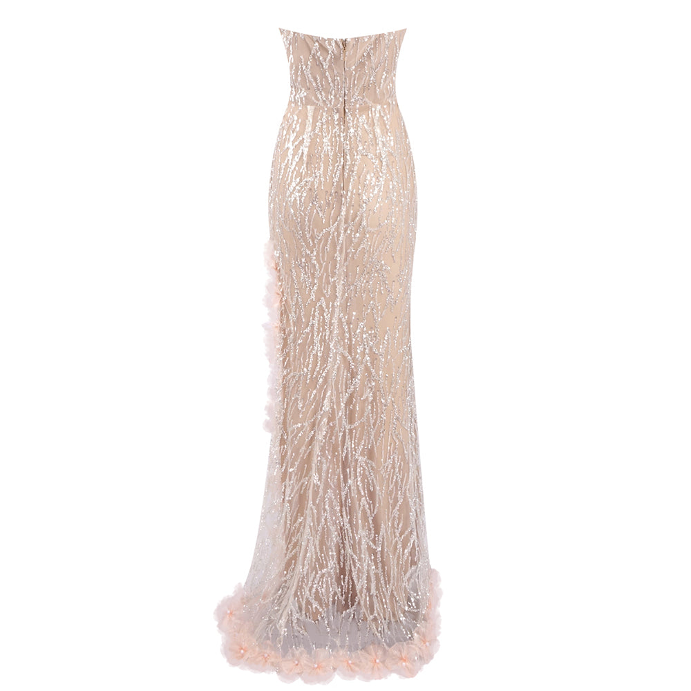 Strapless Floral Sequin Maxi Dress Nude HV2322