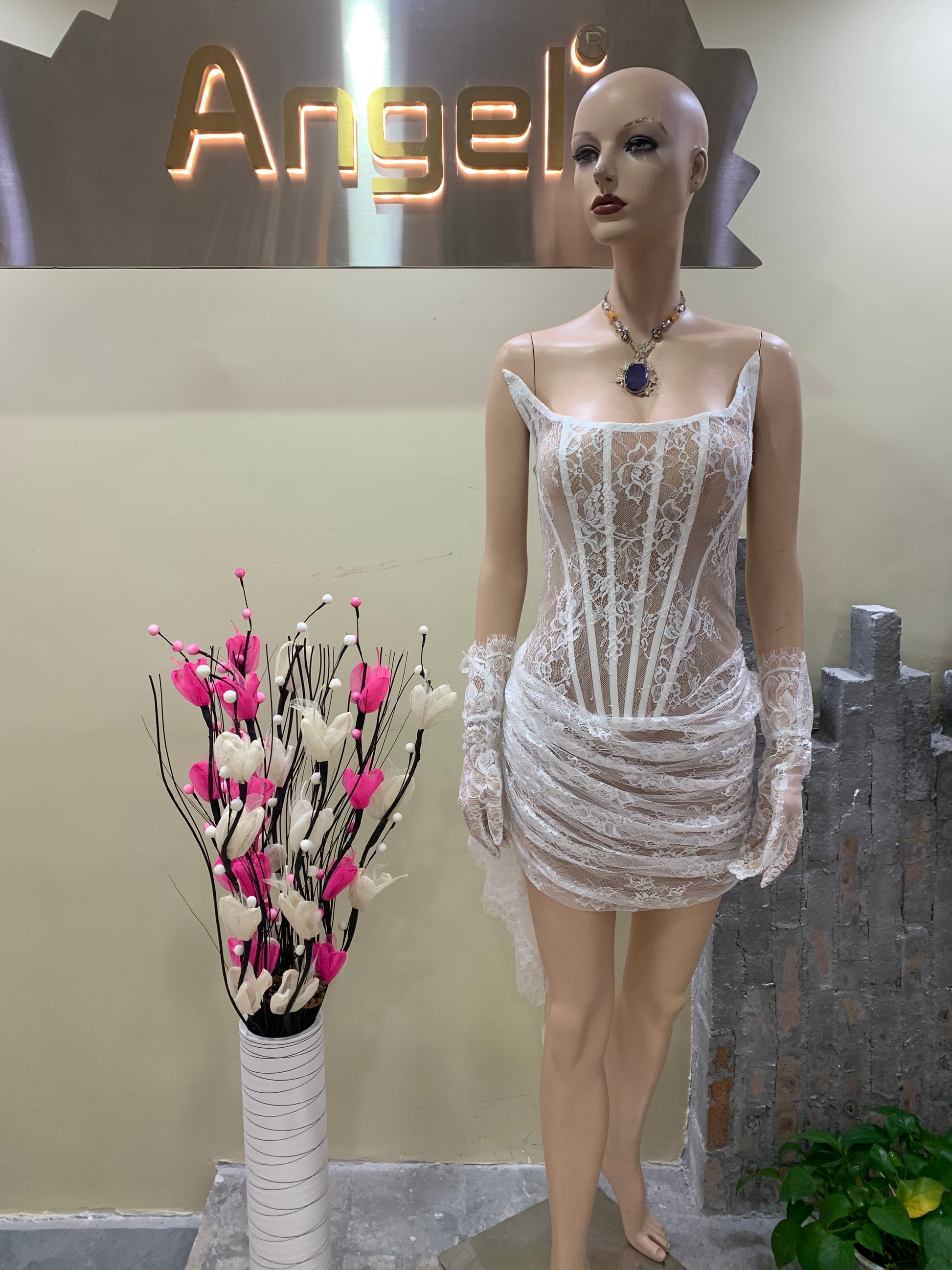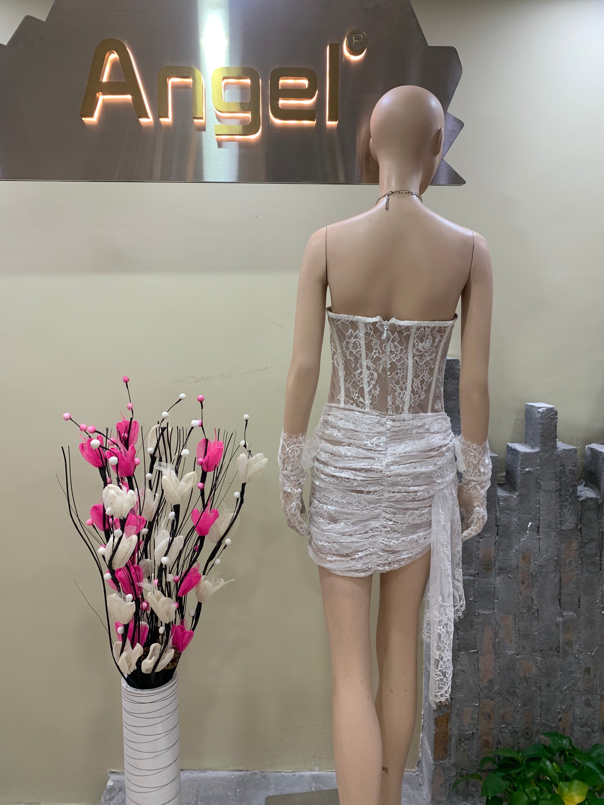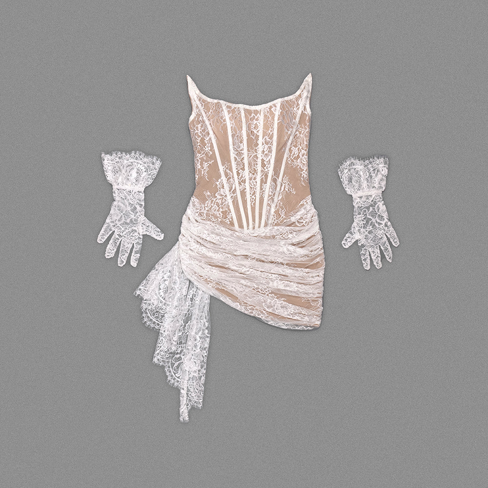 Strapless Lace Corset Dress White HV9924