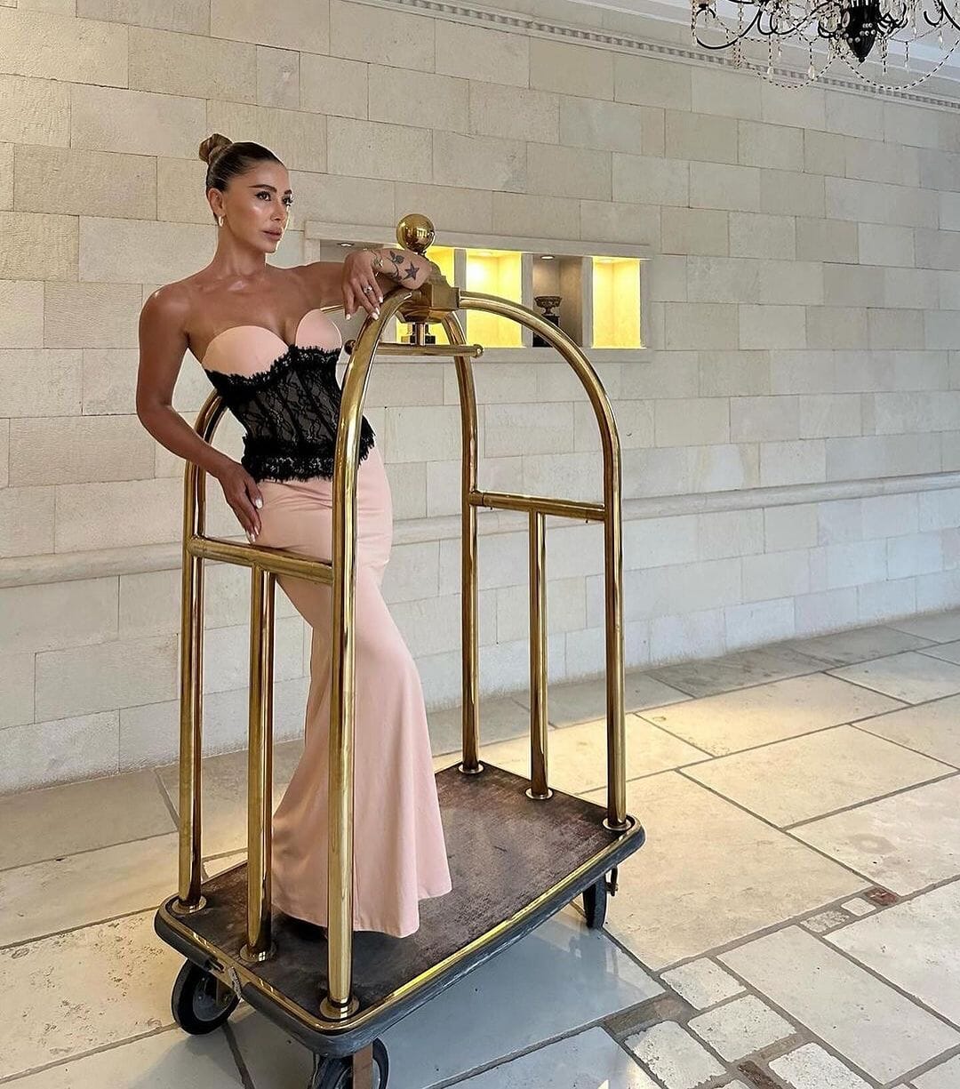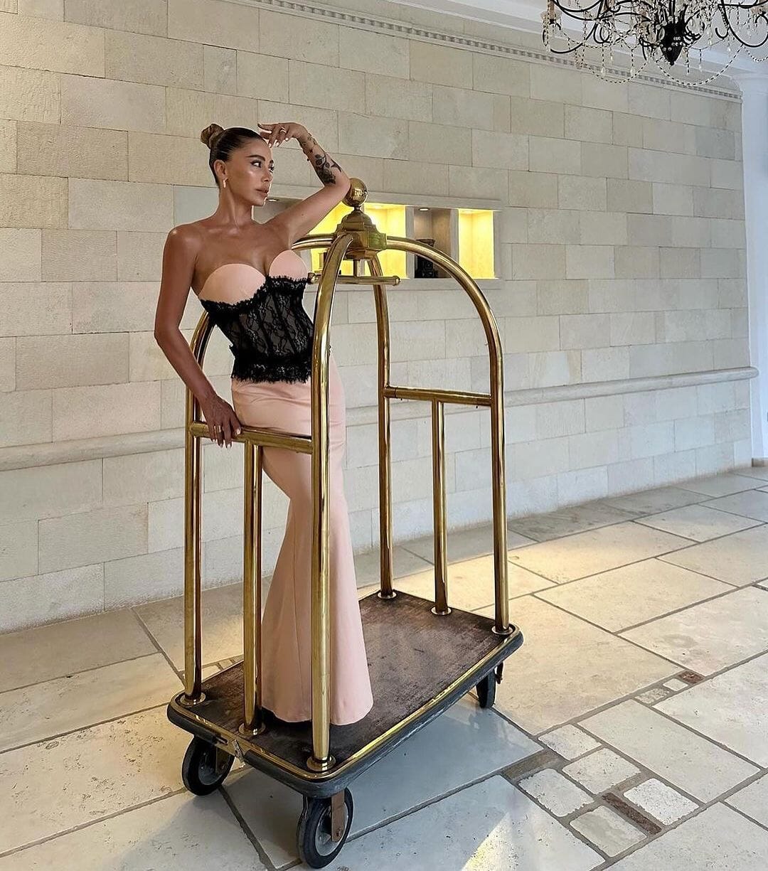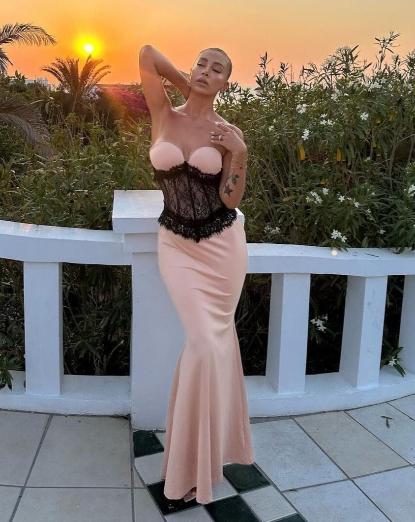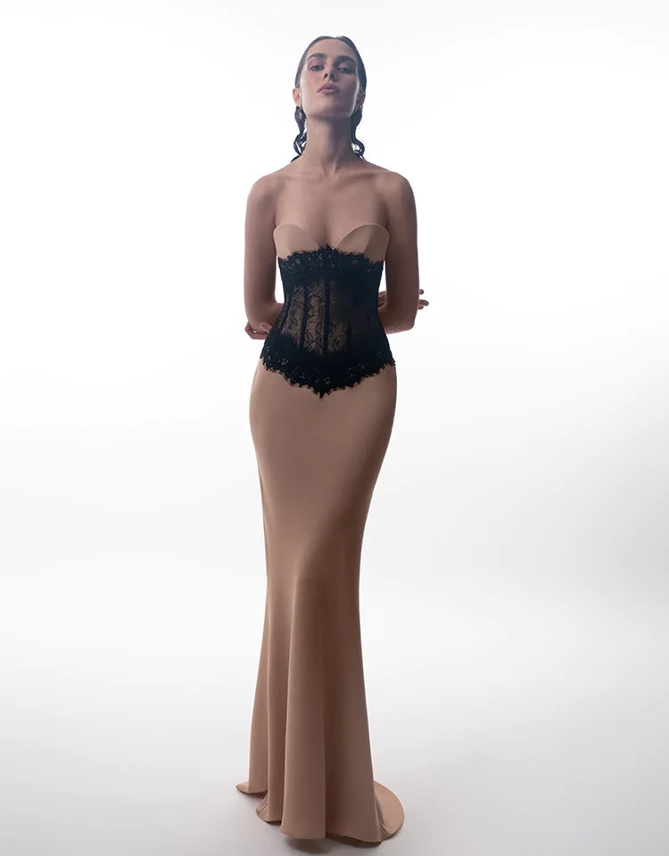 Strapless Lace Insert Maxi Dress Nude Black HV1443