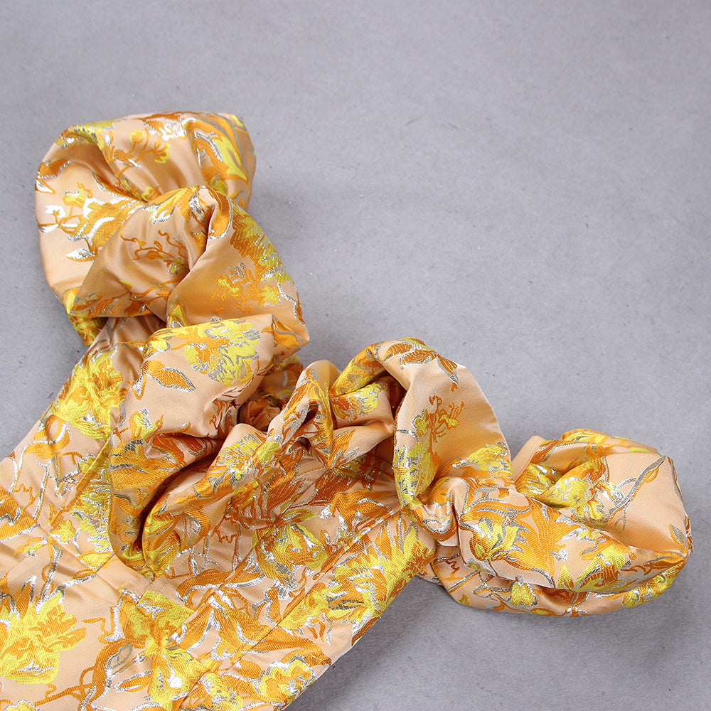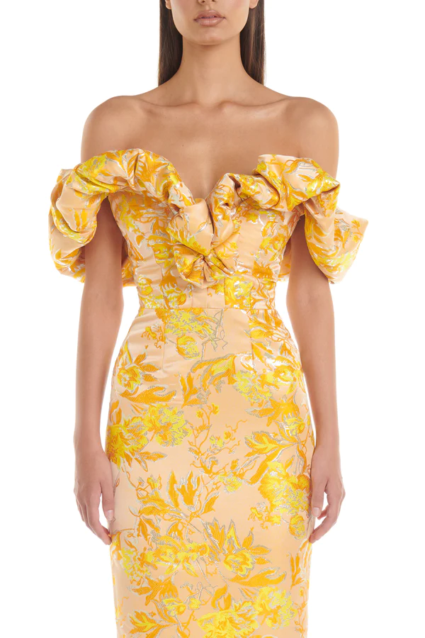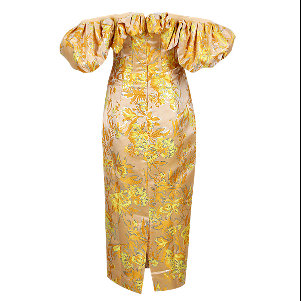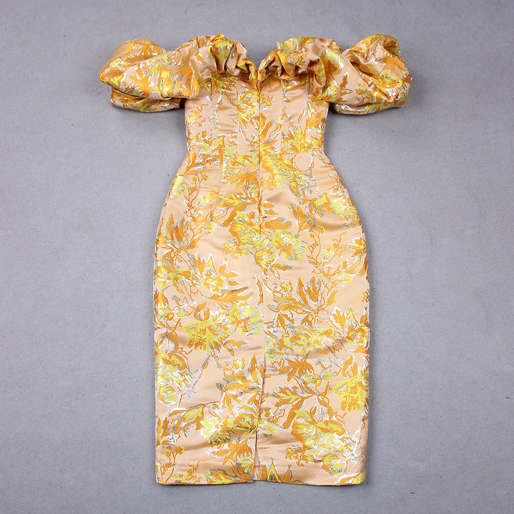 Puff Off Shoulder Floral Midi Dress Amber HV8747