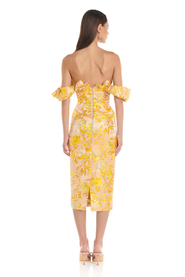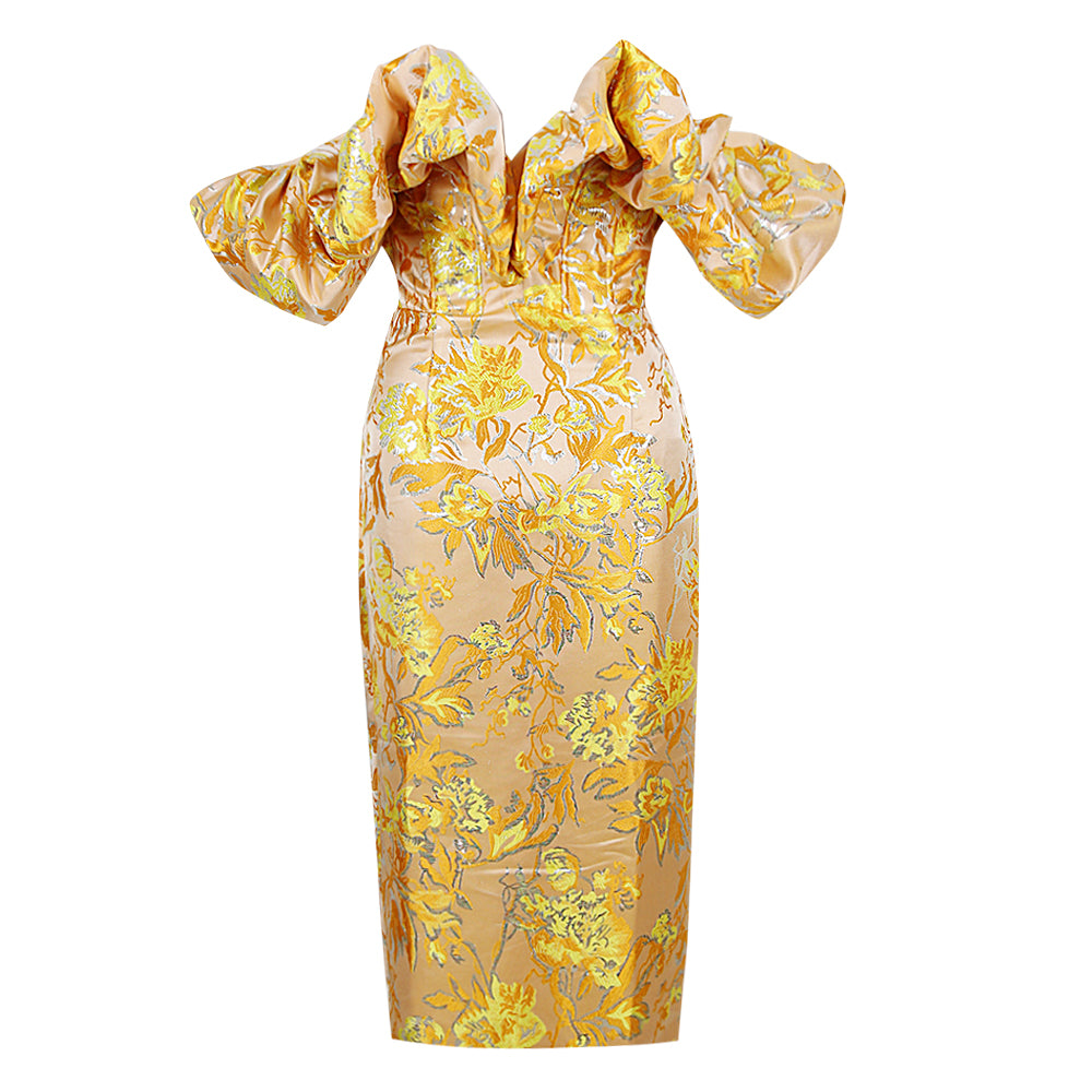 Puff Off Shoulder Floral Midi Dress Amber