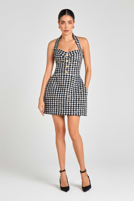 Short Sleeve Crystal Neckline Dress Black HV2724