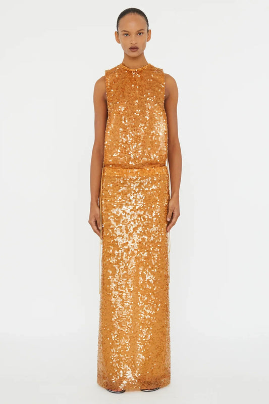 ชุดเดรสยาวเลื่อม ส้ม HV0014