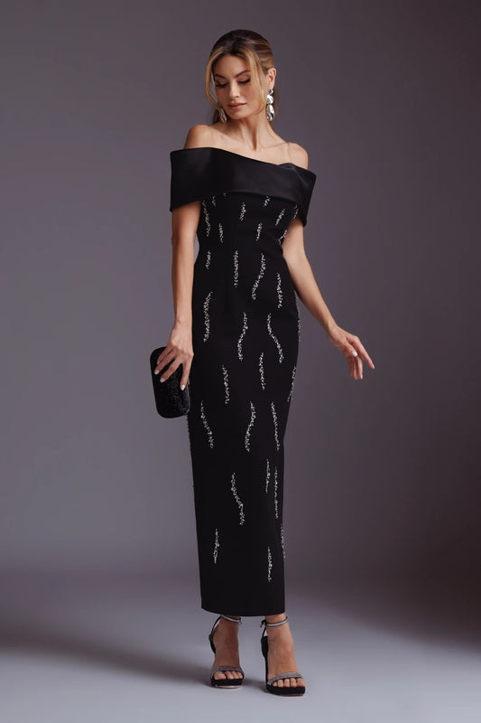 Bardot 水晶黑色长款连衣裙 HV2598
